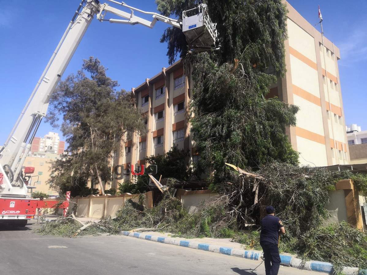 وقال النقيب هاني ميري انه قام رجال الحماية المدنية بمطروح بإزالة الشجرة التي تبلغ ارتفاعها ٢٠ متر وذلك خوفا من تساقطها علي الطلاب لو العاملين بالمدرسة او المارة بالشوارع.