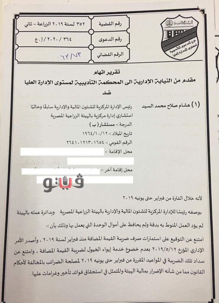 النيابة الإدارية تحيل مستشارًا بالهيئة الزراعية المصرية للمحاكمة | مستند