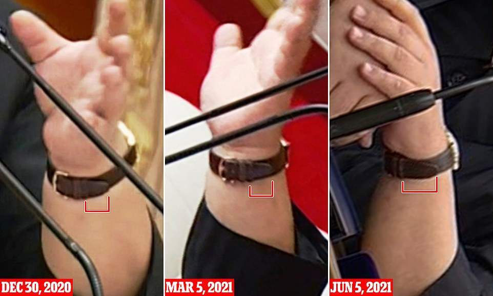 ونشرت "ديلى ميل"، صوراً مكبرة تشير إلى أن كيم، الذي يعتقد أنه يبلغ من العمر 37 عاماً، قد شد حزام ساعته المفضلة، التي يقال إنها تساوي 12 ألف دولار، وتظهر الصور أن معصمه الأيسر أكثر نحافة بكثير مما كان عليه في صور التقطت في نوفمبر 2020 ومارس من هذا العام.