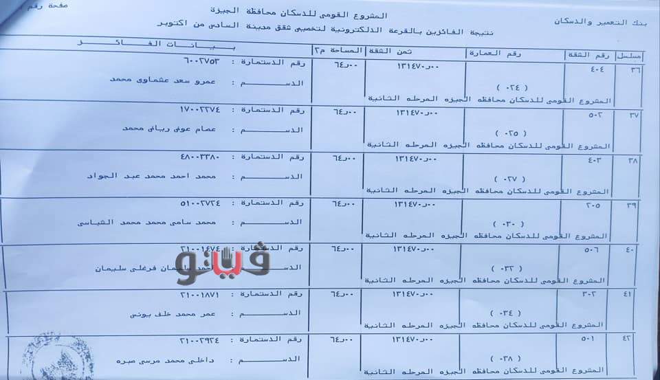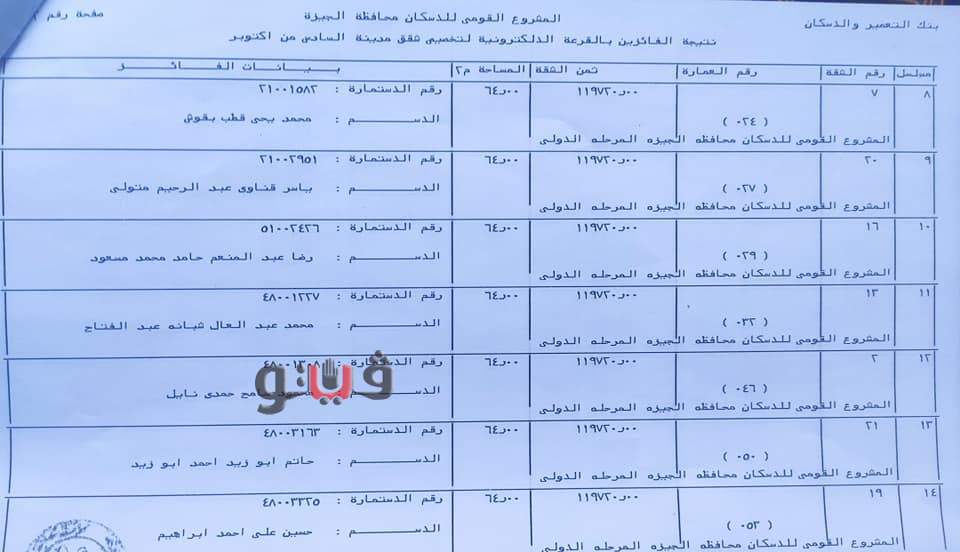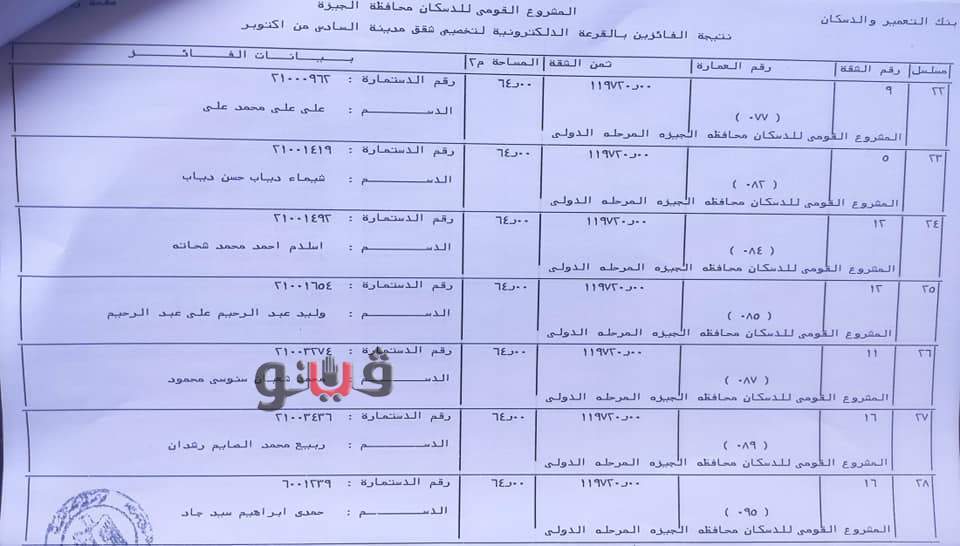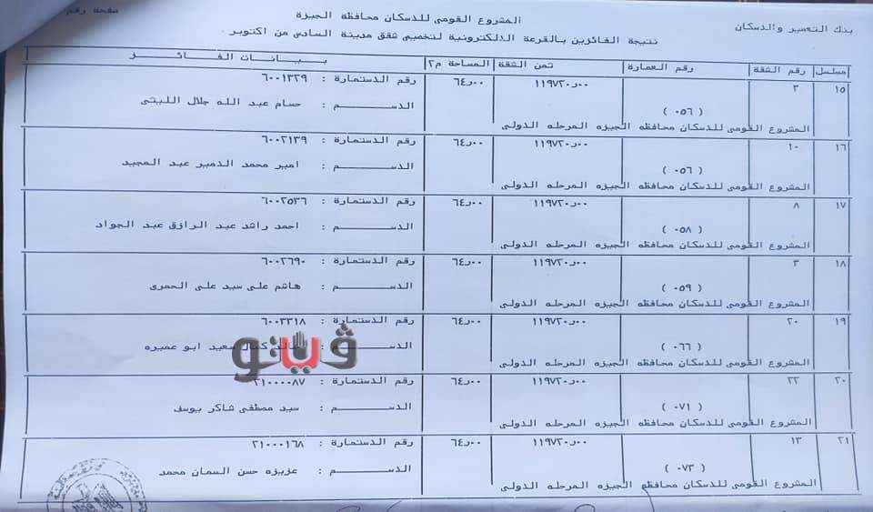 أسماء الفائزين بقرعة الوحدات السكانية في الجيزة | صور