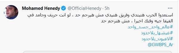 ومن جانبه علق الفنان محمد هنيدي على الفيديو قائلًا: "استعدوا الحرب ستبدأ وفريق هنيدي لن يرحم أحد، لو أنت حريف وجامد في الفيفا جاء وقتك أخيرًا".