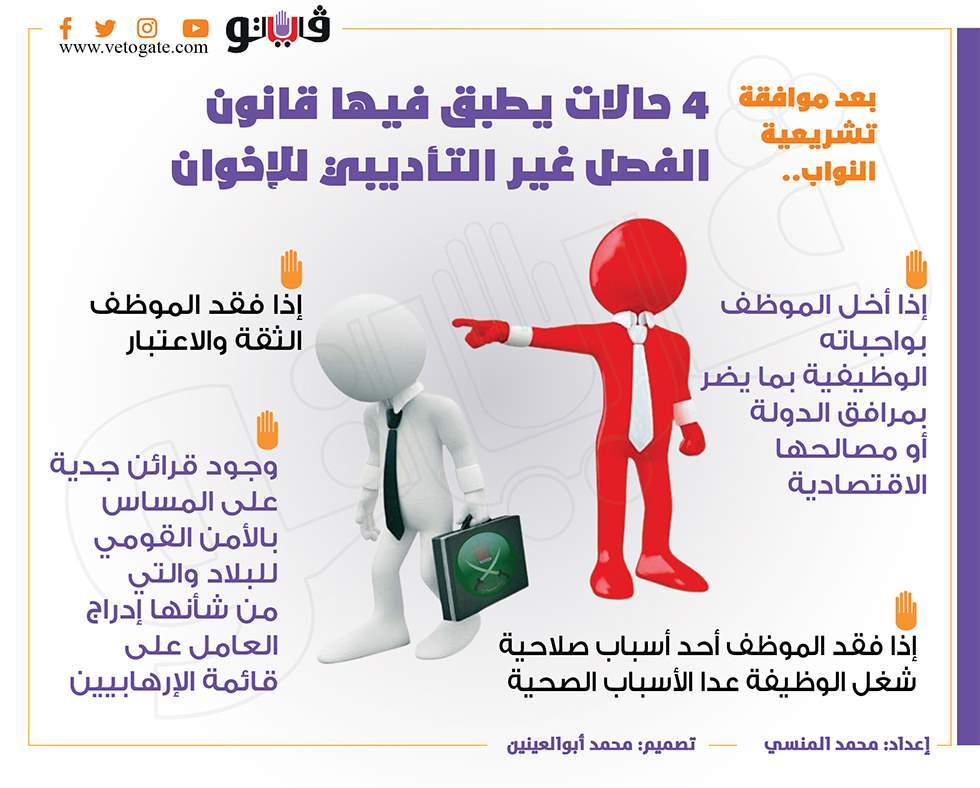 بعد موافقة تشريعية النواب.. 4 حالات يطبق فيها قانون الفصل غير التأديبي للإخوان | انفوجراف
