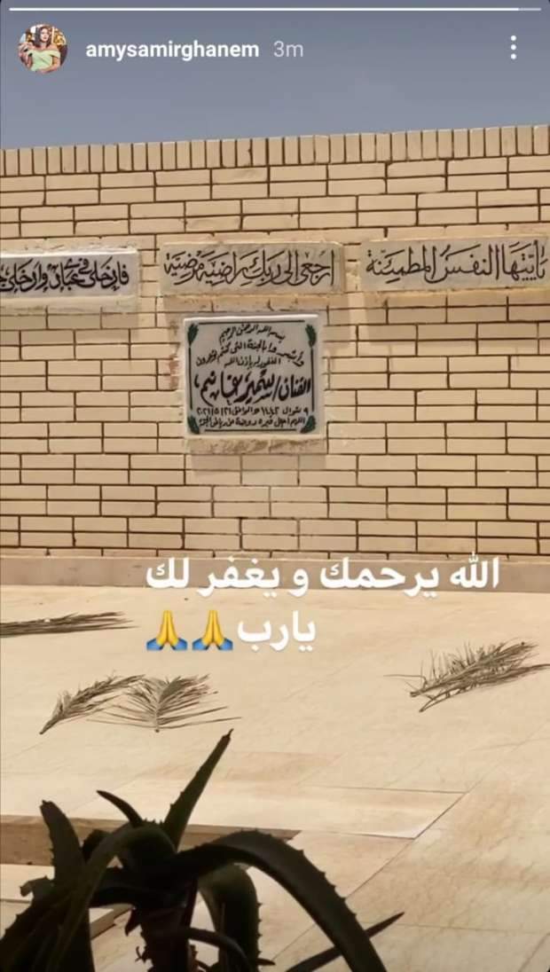 ونشرت إيمي صورة من أمام قبر والدها عبر خاصية ستورى على صفحتها الخاصة على موقع "انستجرام" وعلقت قائلة: "الله يرحمك ويغفرلك يارب".