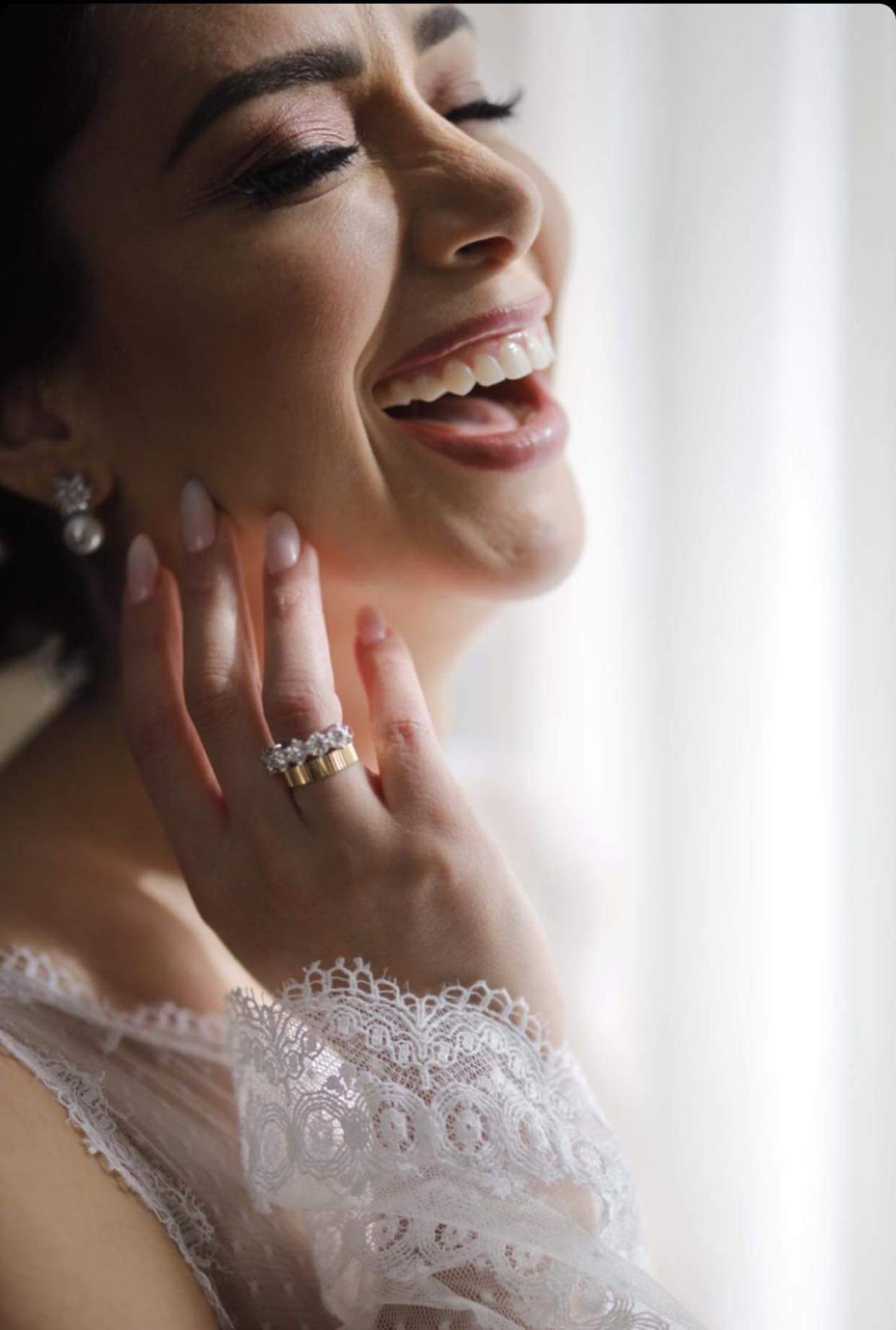 وأطلت الفنانة بسنت شوقي بالفستان الأبيض قبل دقائق من عقد قرانها على الفنان محمد فراج.