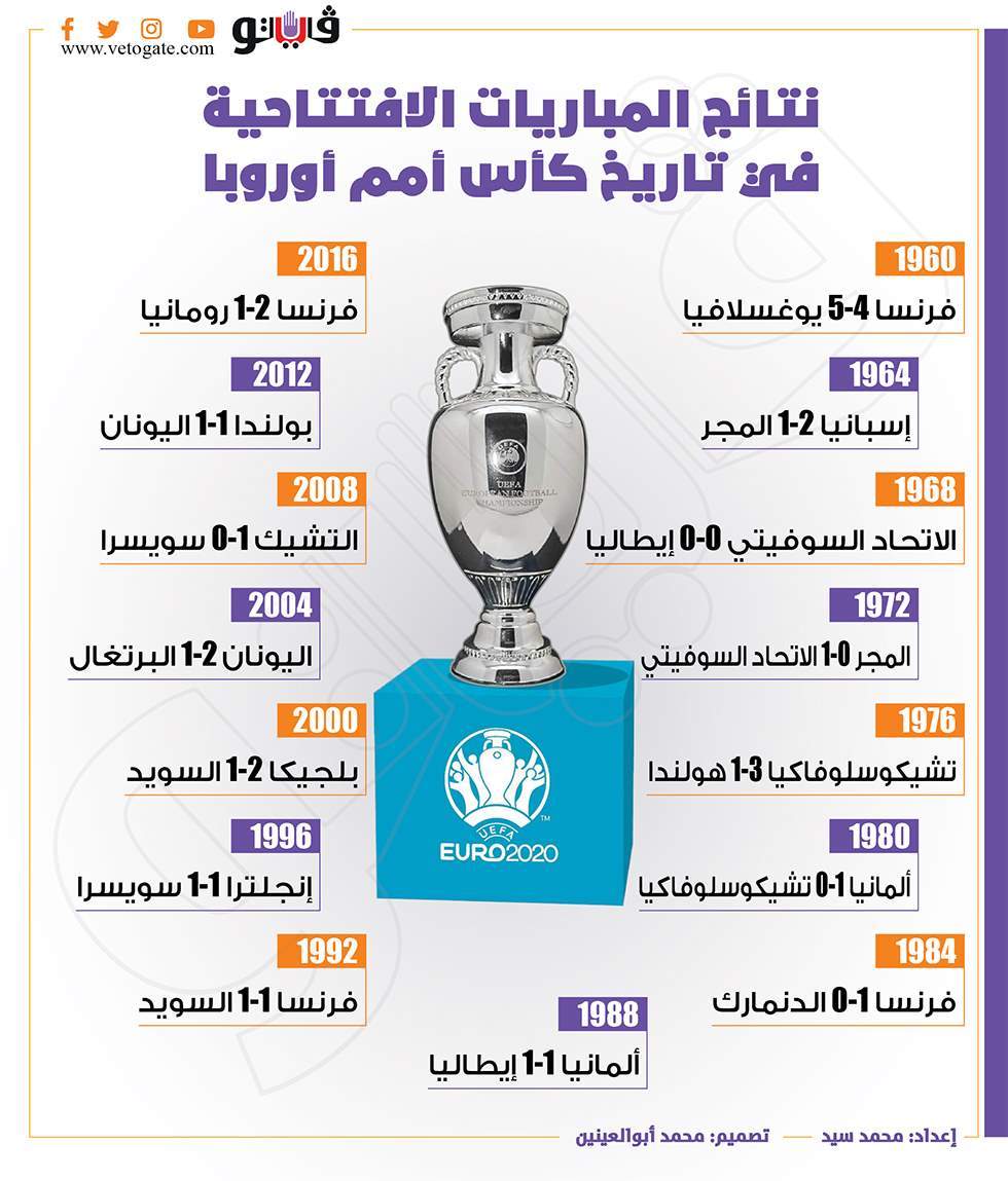 نتائج المباريات الافتتاحية في تاريخ كأس أمم أوروبا | انفوجراف