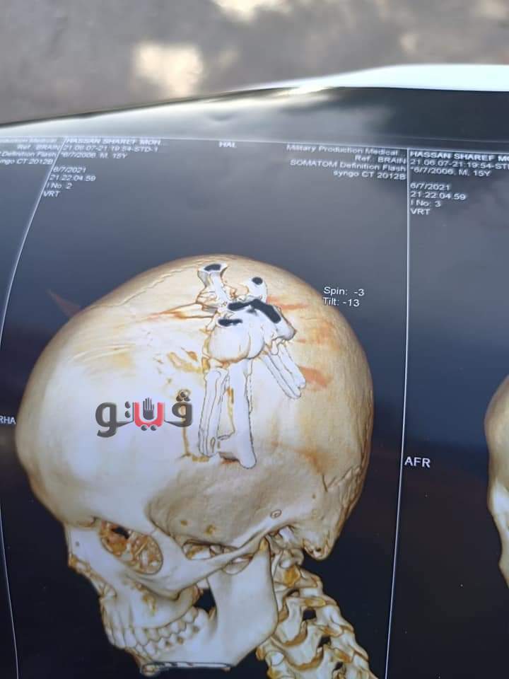أدى إلى إصابته بجرح قطعى فى المخ، ونزيف، وحاليا يمكث داخل المستشفى لتلقى