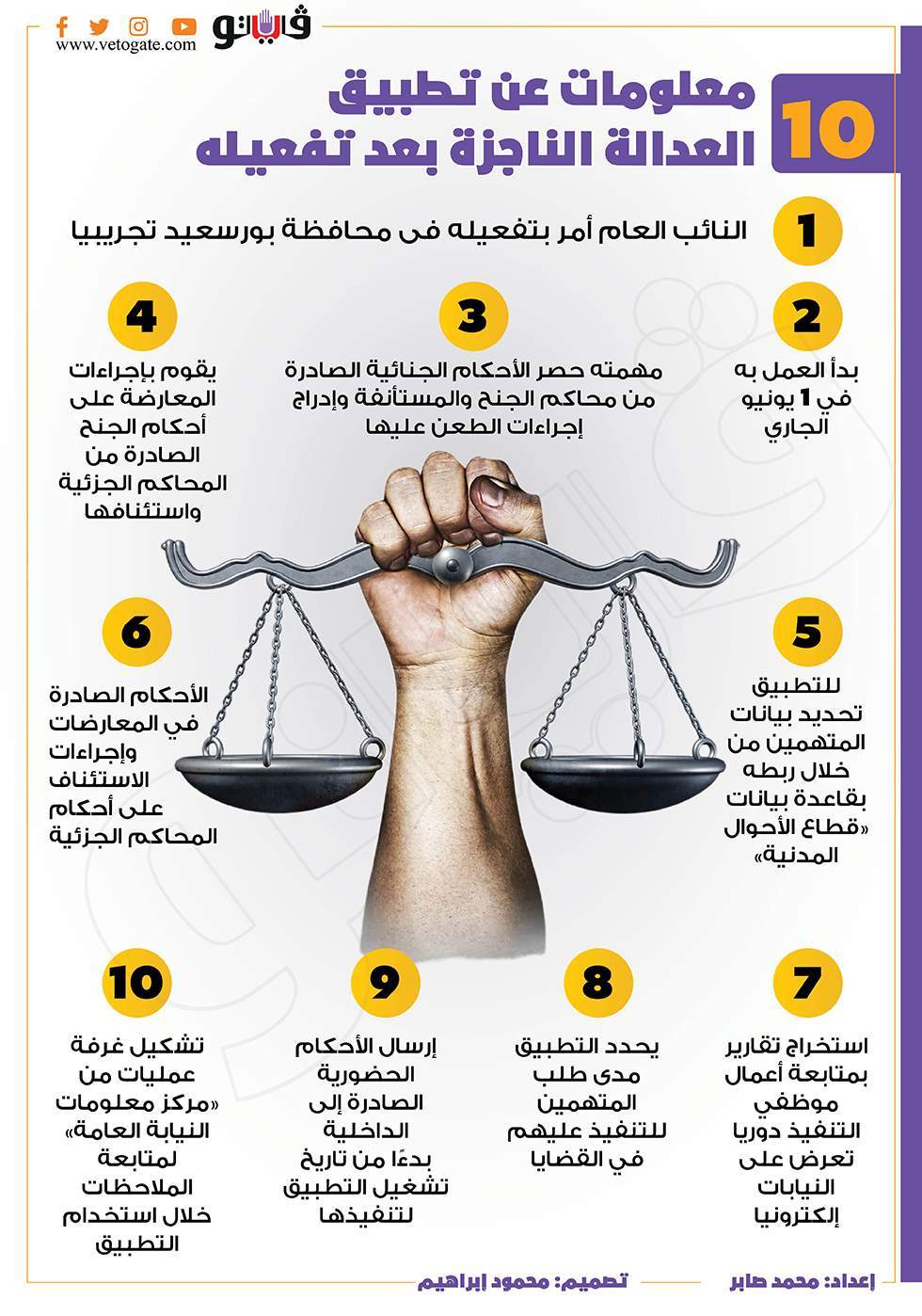 10 معلومات عن تطبيق العدالة الناجزة بعد تفعيله | إنفوجراف