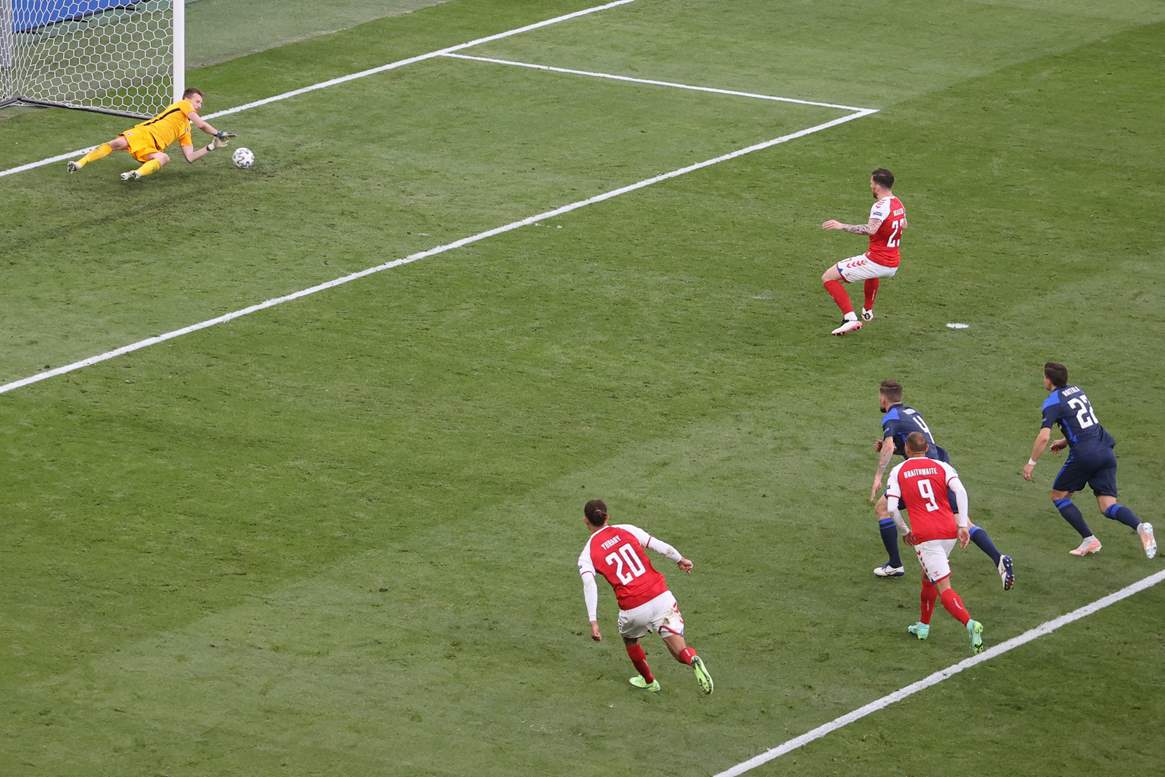 سجل اللاعب جويل بوهيانبالو هدف فنلندا التاريخي في الدقيقة 59، وهو الأول لمنتخب فنلندا في أول مشاركة له في كأس أمم أوروبا، ويحقق الفوز في أول مباراة في تاريخه بالبطولة، ورفض اللاعب الاحتفال بالهدف حفاظًا على مشاعر الجماهير الدنماركية بسبب إصابة إريكسن.