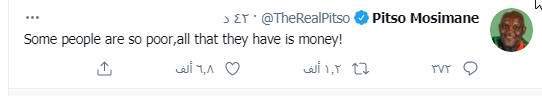 وكتب بيتسو موسيماني، عبر حسابه: "بعض الناس فقراء جدا، كل ما لديهم هو المال"، في إشارة إلى أن هناك أشياء أفضل بكثير من المال.