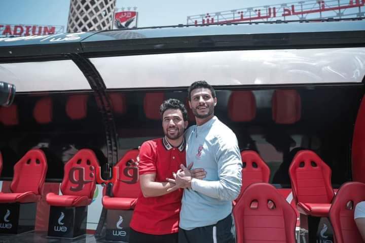 رصدت بوابة فيتو زيارة محمود حسن تريزيجيه لاعب استون فيلا الإنجليزي الحالي لمقر النادي الأهلي والتقاءه بلاعبي الفريق والجهاز الفني وكذلك محمود الخطيب رئيس مجلس إدارة النادي الأهلي.