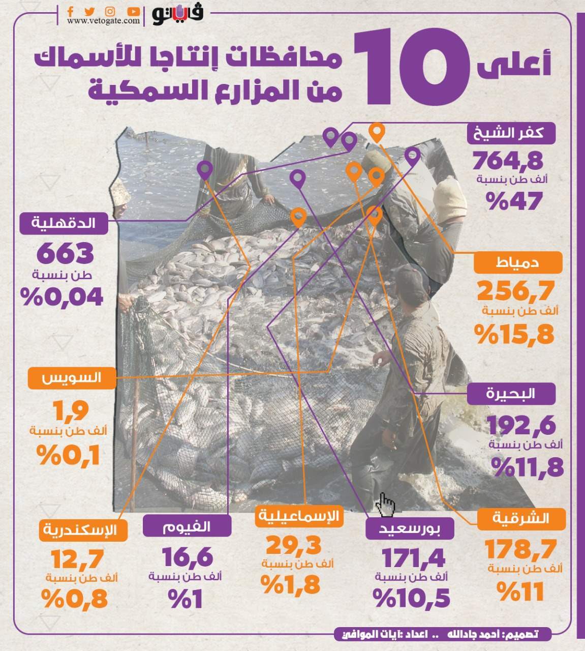 أعلى 10 محافظات إنتاجا للأسماك من المزارع السمكية | إنفوجراف