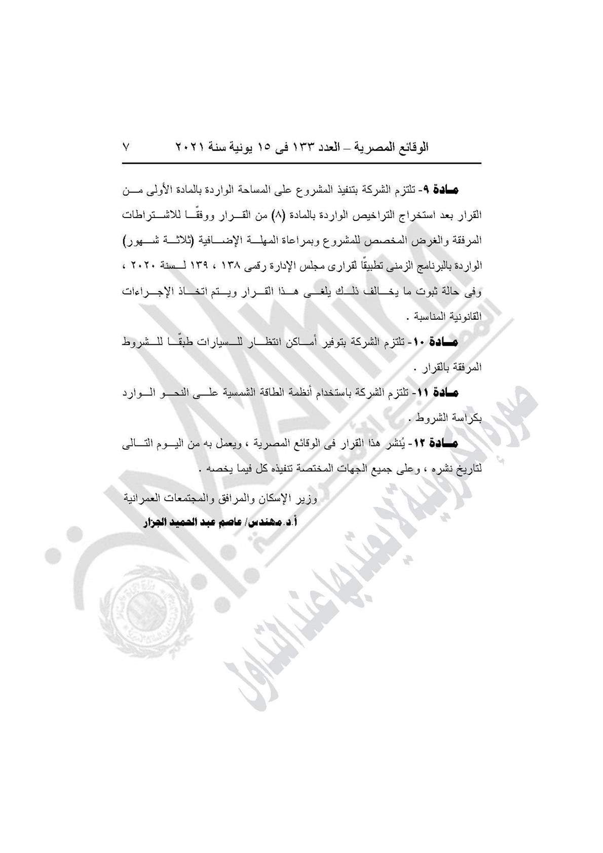 وجاء في المادة الثانية "تلتزم الشركة بالتعهد الموقع منها بعدم عرض وحدات المشروع للحجز أو البيع إلا بعد موافقة الهيئة، وفي حالة مخالفة ذلك يتم إلغاء هذا القرار واتخاذ الإجراءات القانونية المناسبة في هذا الشأن".