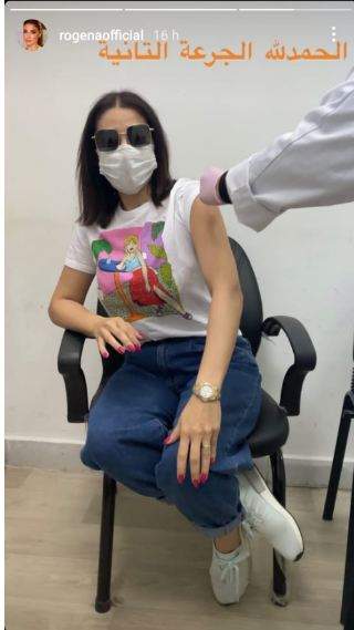 وظهرت روجينا تتلقى الجرعة الثانية من اللقاح المضاد لفيروس كورونا المستجد.