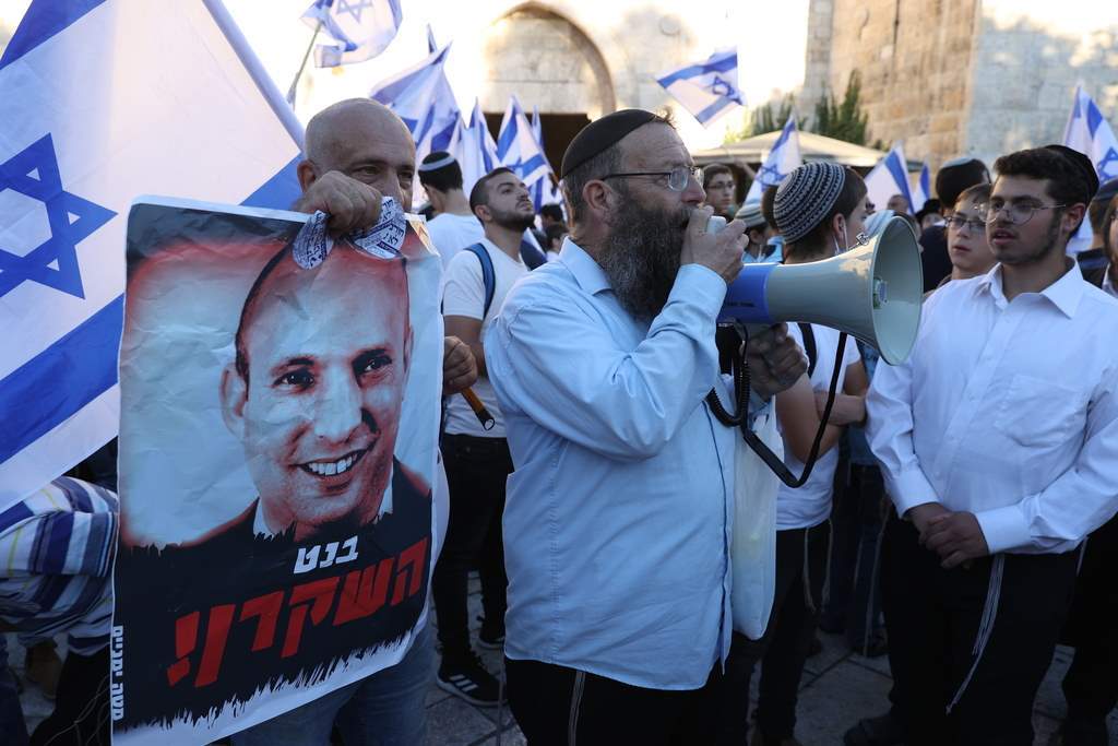 حرق المستوطنون اليهود الذي خرجوا في مسيرة الأعلام الإسرائيلية اليوم الثلاثاء بالقدس صورة رئيس الوزراء الإسرائيلي الجديد نفتالي بينت لعدم مشاركته في المسيرة.