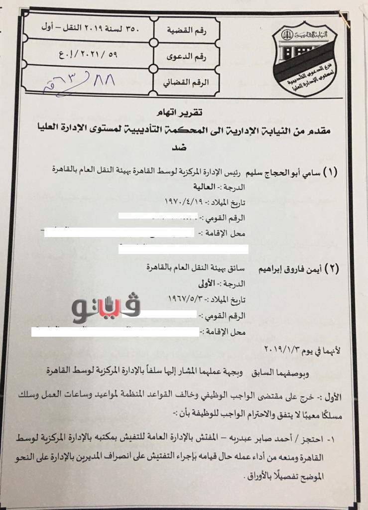 إحالة رئيس وسط القاهرة بهيئة النقل العام بالقاهرة وسائق للمحاكمة