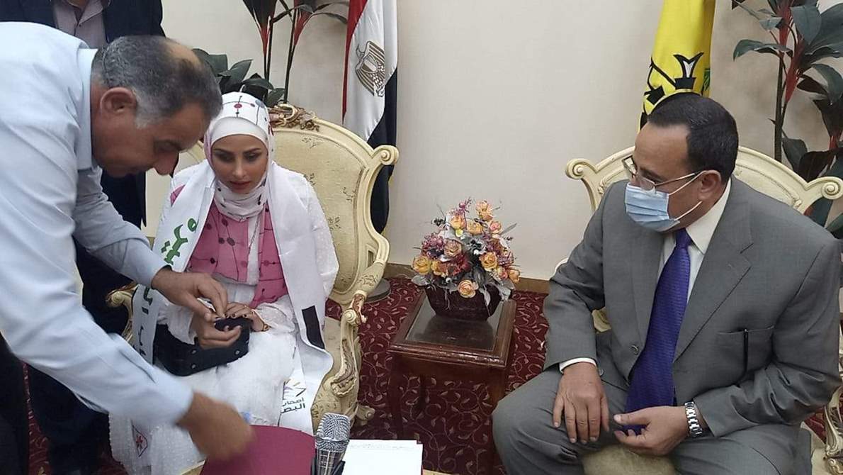 وكانت العروس التى تعانى من فقد البصر قد تم زفافها بالجهود الذاتية حيث طلبت في لقاء تليفزبونى من السيد الرئيس توفير شقة الزوجية لها ، وقد استجاب السيد الرئيس لمطلبها ، وأصدر توجيهاته بتلبيته وتوفير الشقة كهدية لها .