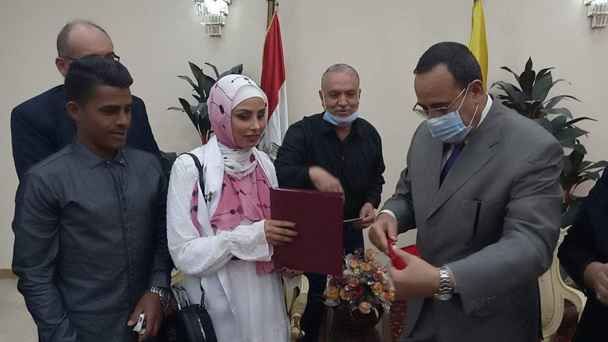 وقدم المحافظ الشكر للرئيس الذى استمع الى نداء العروس ووافق على منحها الشقة كهدية لها مشيرا الى أنه تم استكمال مرافق الشقة على نفقة الدولة بدون تحمل العروسين شىء، وأصبحت الشقة جاهزة للاقامة.
