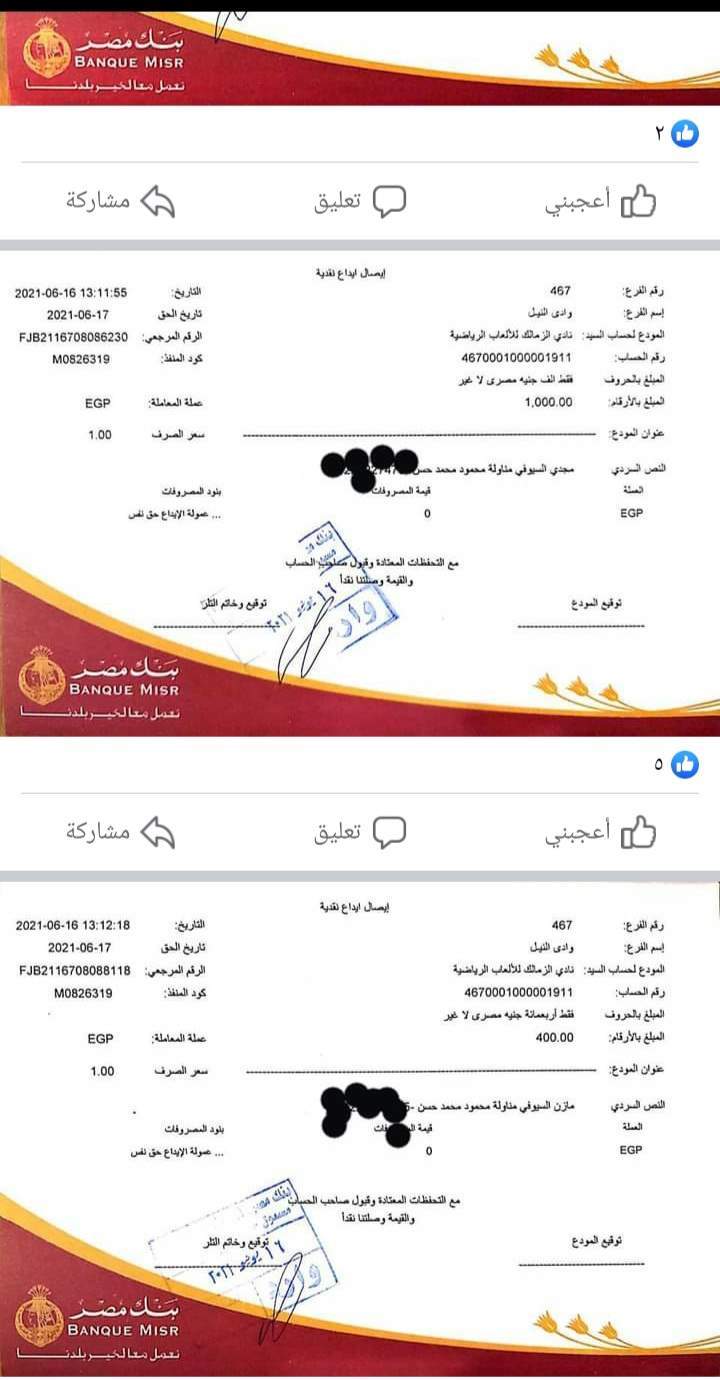 وتنشر "فيتو" صورا لتبرعات أول أسرة زملكاوية للحساب البنكي الجديد الخاص بنادي الزمالك.