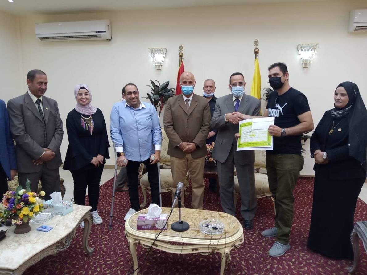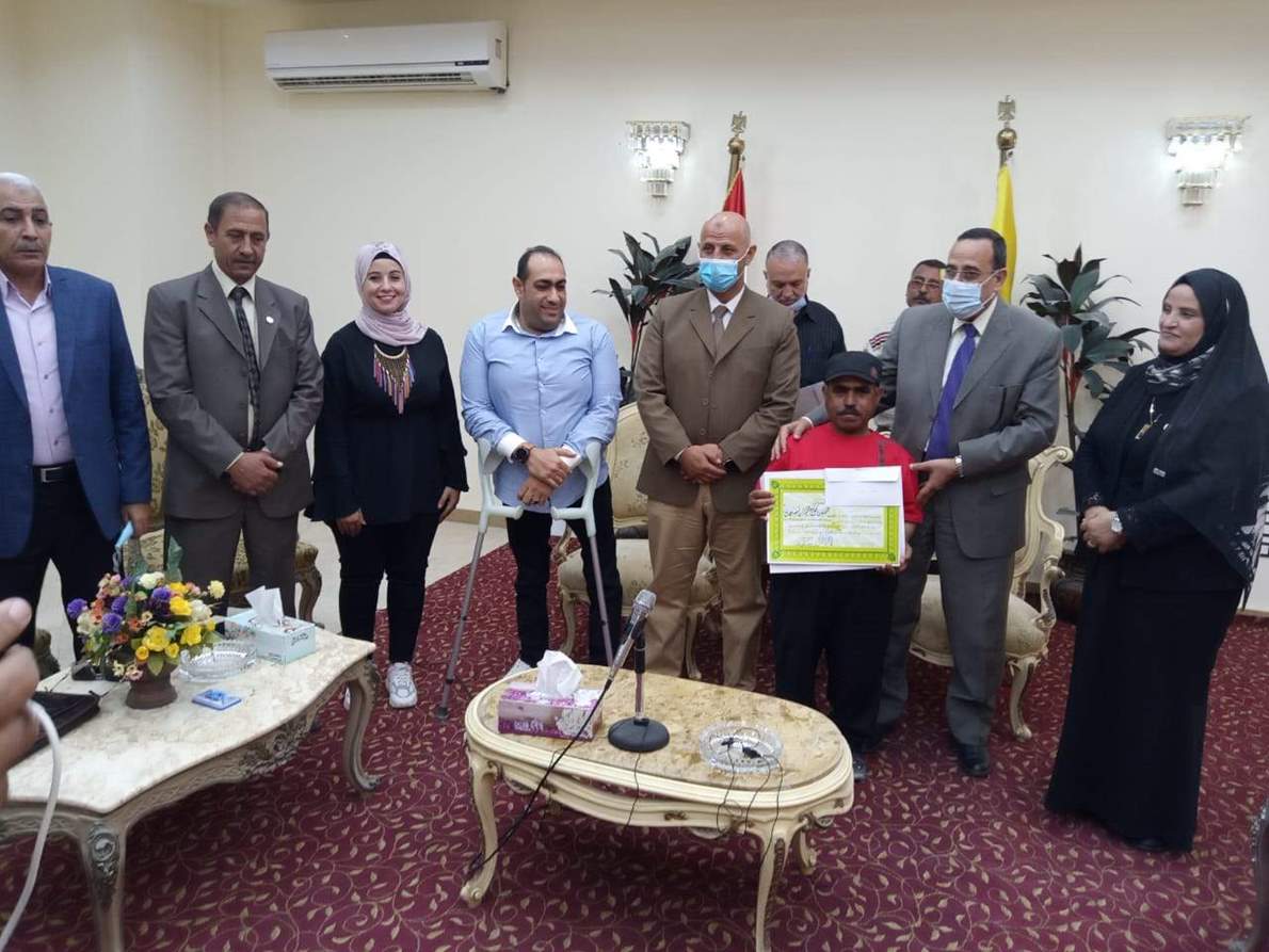 جاء ذلك خلال لقاء المحافظ مع ذوى الاحتياجات الخاصة لتكريم الفائزين منهم في المسابقات الرياضية وتحقيق مراكز متقدمة على مستوى الجمهورية ( بحضور كليب راشد مدير عام الشباب والرياضة ، حسن صالح رئيس مجلس ادارة نادى المعاقين ، ماجدولين كمال المدير التنفيذى للنادى ، وصلاح الشريف مدير ادارة الشباب والرياضة بالعريش الى جانب النائبة عايدة السواركة وأعضاء نادى المعاقين).