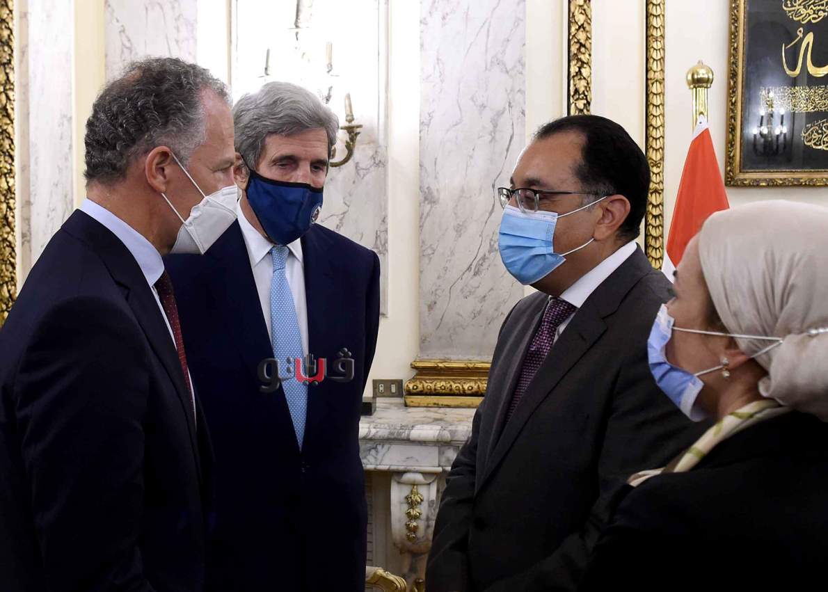 وصرح السفير نادر سعد، المتحدث باسم مجلس الوزراء، بأن اللقاء تم خلاله استعراض جوانب التعاون الجاري بين مصر والولايات المتحدة في موضوعات البيئة وتغير المناخ، لا سيما في ضوء عرض مصر استضافة الدورة الـ 27 لمؤتمر أطراف الاتفاقية الإطارية في 2022، حيث أكد رئيس الوزراء أن ملفات البيئة لم تعد ترفاً، ومصر من جانبها أخذت هذه الموضوعات بمنتهى الجدية، ولذا فهي واحدة من الدول القلائل التي التزمت بالوصول بنسبة الطاقة الجديدة في مزيج الطاقة المستخدم إلى ٤٢٪ خلال السنوات العشر القادمة، بالإضافة إلى توقيع مذكرة تفاهم مؤخراً مع إحدى الشركات الألمانية في مجال انتاج الهيدروجين الأخضر.