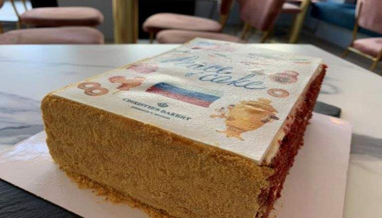 وفي الداخل كان نصف الكعكة بنكهة العسل، وفقا للتقاليد الروسية ونصفها الآخر باللون الأحمر الغامق، الشائع في الولايات المتحدة، بحسب وكالة رويترز للأنباء.