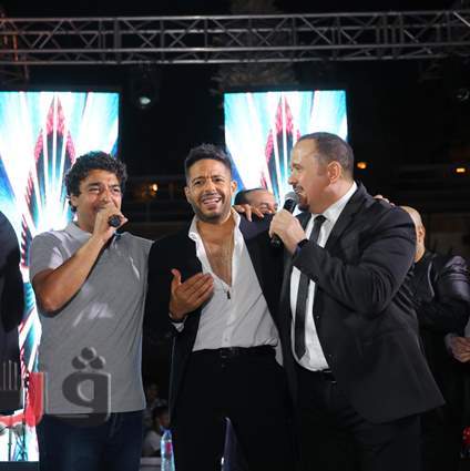 فى هذا السياق، قدم "حماقي" فى بداية الحفل أغنية "نفسي أبقا جنبه"، وذلك بعد إحتضان أبن مصطفي قمر، ومن المقرر أن يحيي الجزء الثاني من الحفل الفنان تامر حسني