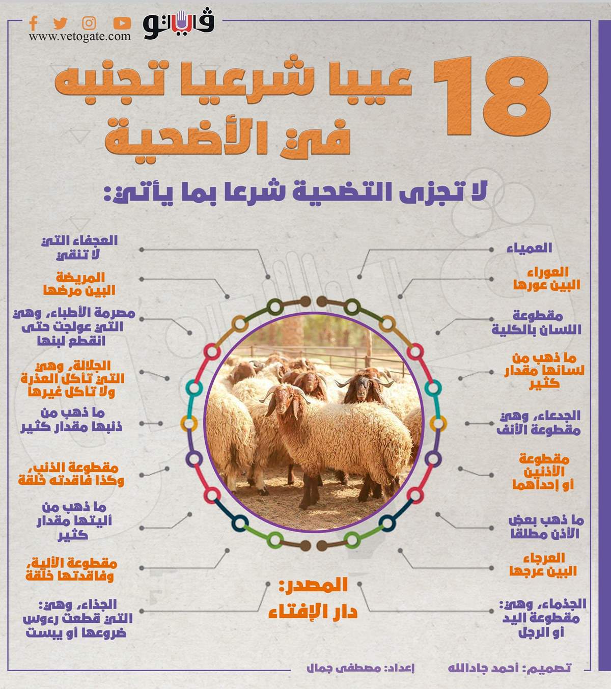 18 عيبا شرعيا تجنبه في الأضحية | إنفوجراف الخميس 17/يونيو/2021 - 04:12 م 6/17/2021 4:12:40 PM شروط صحة الأضاحي مصطفى جمال شارك طباعة 18 حجم الخط أوضحت دار الإفتاء العيوب الشرعية التى يجب أن تخلو منها الأضحية شارك طباعة دار الإفتاء الاضحية شروط صحة الاضاحي