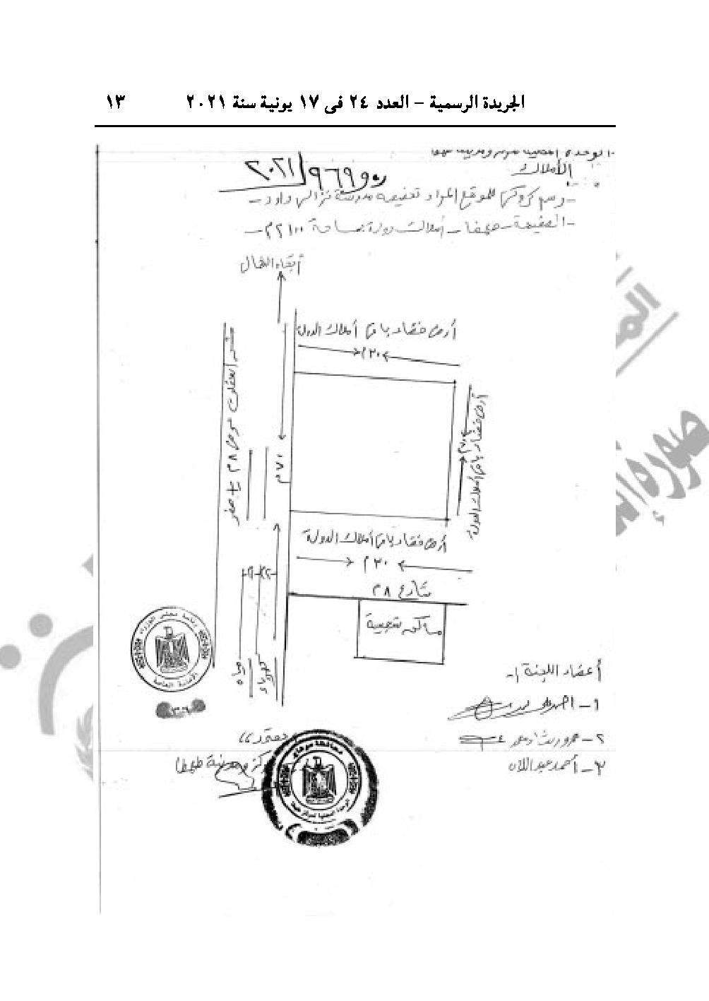 -القرار رقم 969 لسنة 2021، بتخصيص قطعة أرض من أملاك الدولة الخاصة بناحية نزالي داوود، قرية الصفيحة بمرز طهطا بمحافظة سوهاج بالمجان لإقامة مدرسة ابتدائية عليها.