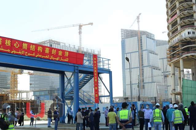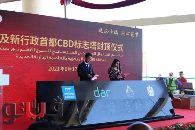 جاء ذلك خلال احتفال نظمته الشركة الصينية العامة للهندسة المعمارية CSCECالمسئولة عن اعمال تشييد الأبراج بالمنطقة الاعمال المركزية باستكمال الهيكل الخرسانى للبرج الايقونى .