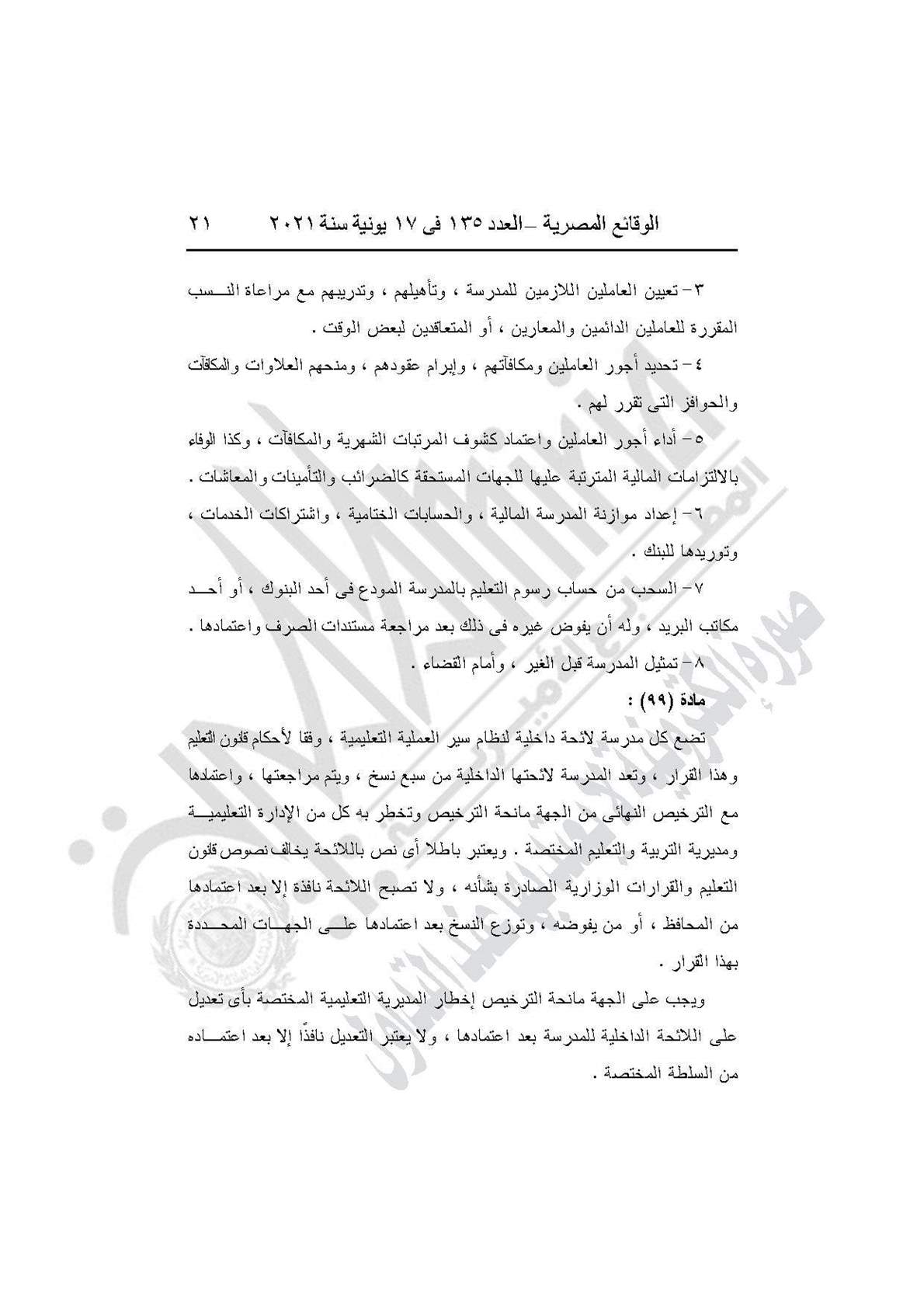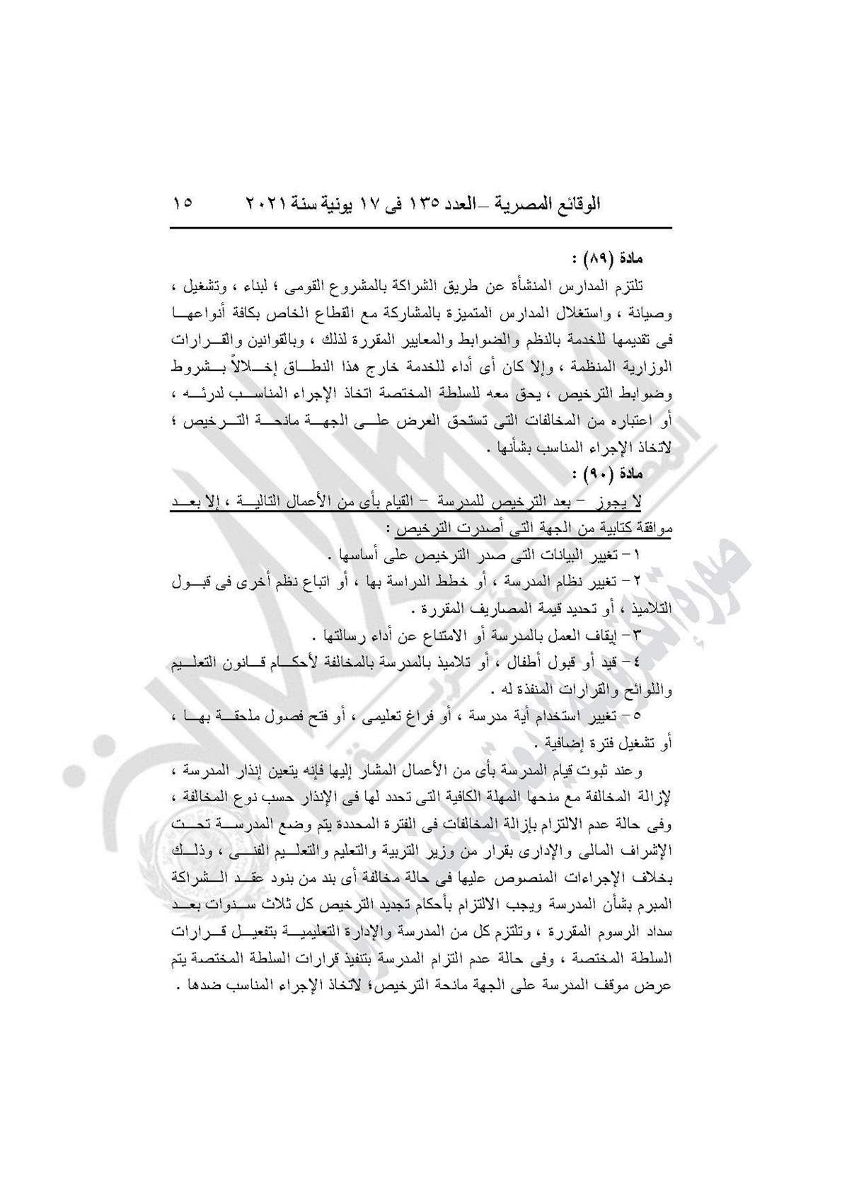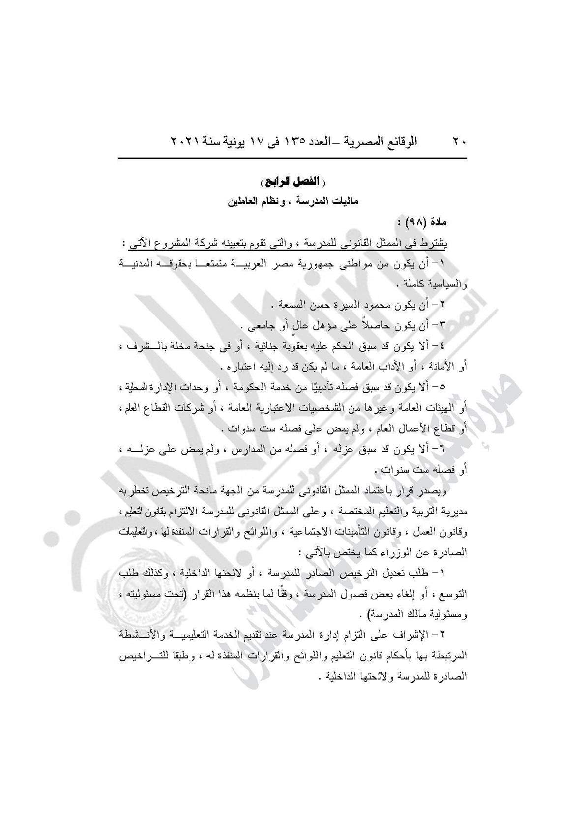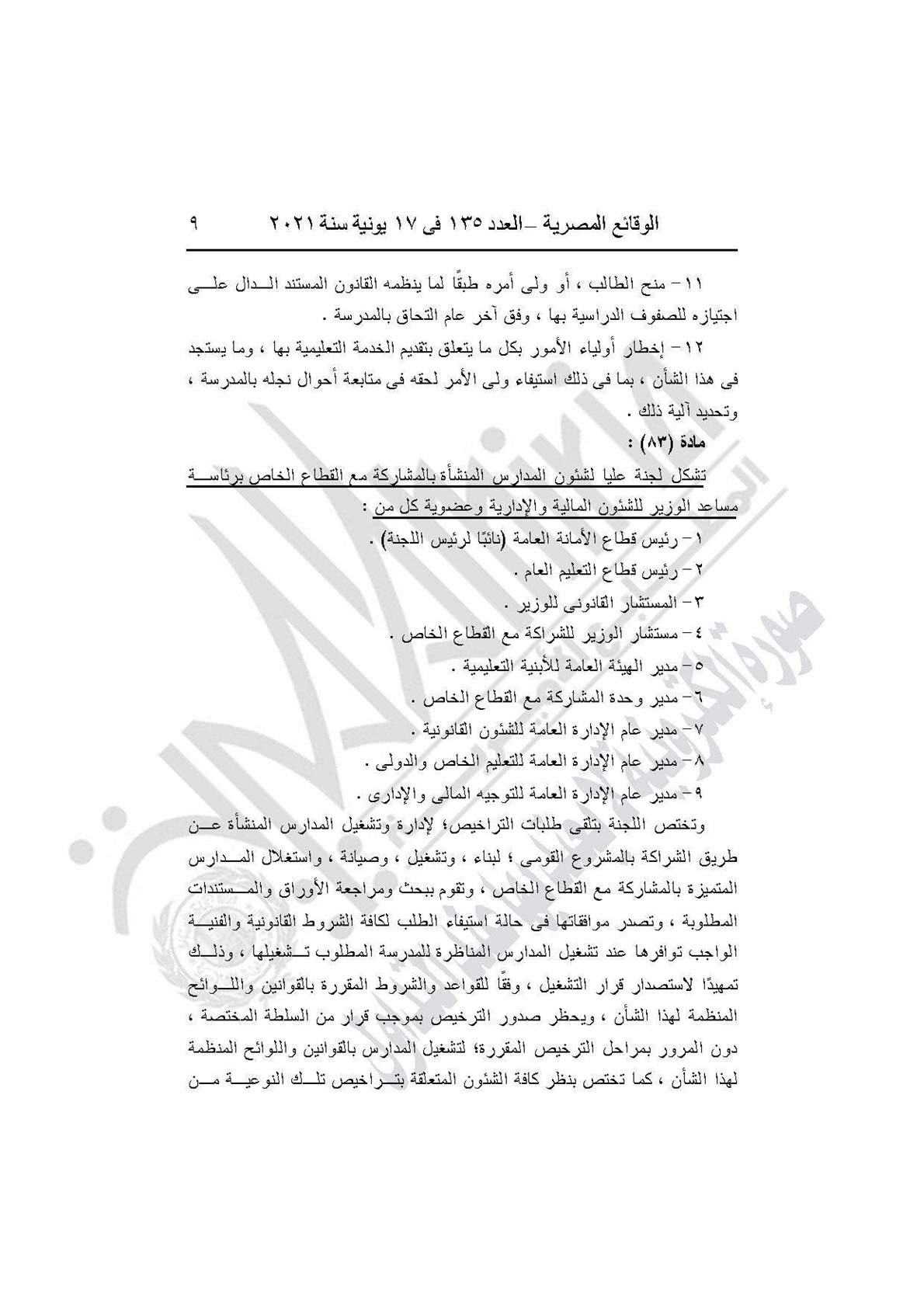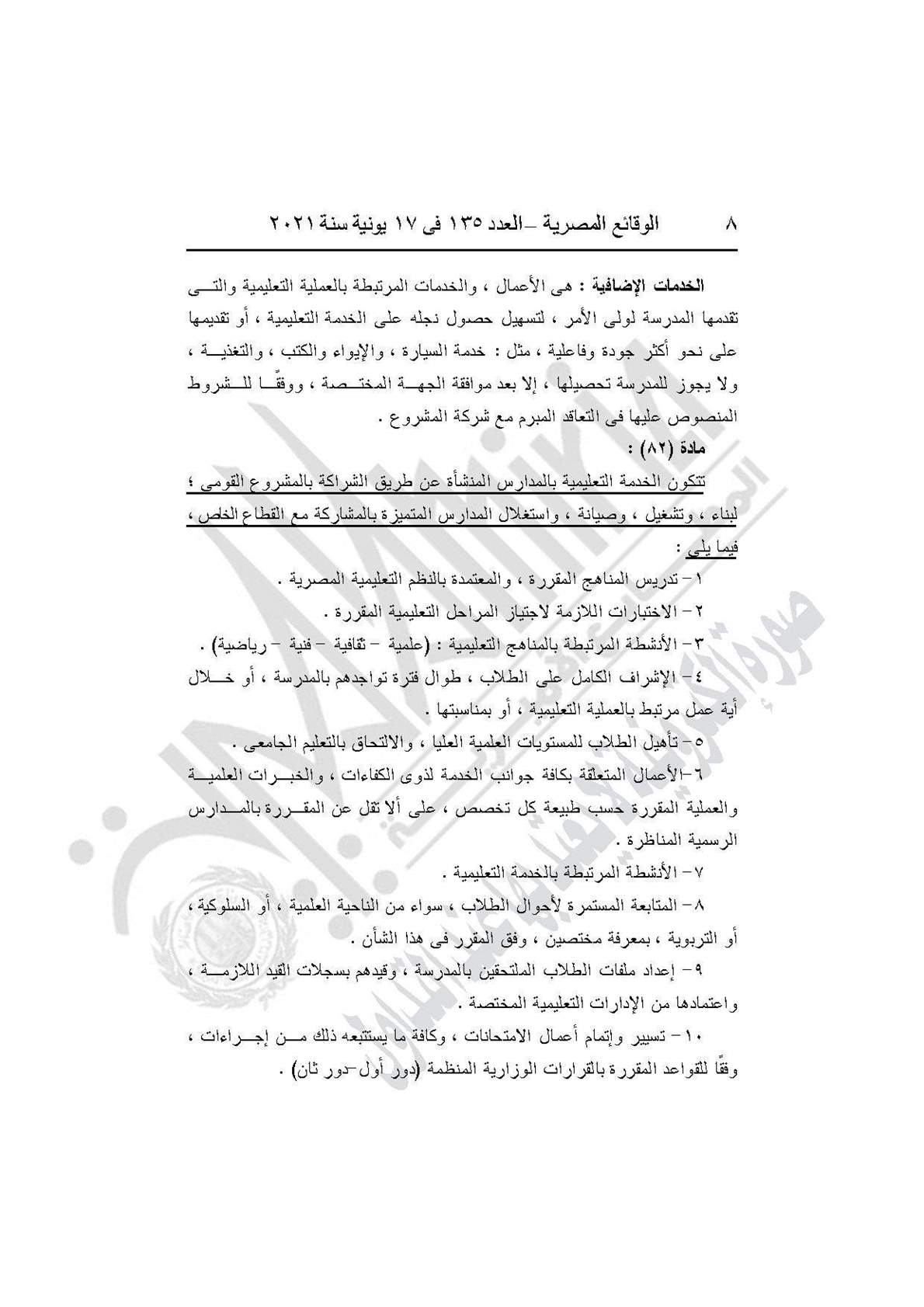 نشرت جريدة الوقائع المصرية في العدد 135، الصادر في 17 يونيه عام 2021، قرار وزارة التربية والتعليم والتعليم الفني رقم 59 لسنة 2021، بإضافة باب تاسع إلى القرار الوزارى رقم 420 لسنة 2014 بعنوان: (المدارس المنشأة عن طريق الشراكة بالمشروع القومى لبناء وتشغيل وصيانة واستغلال المدارس المتميزة بالمشاركة مع القطاع الخاص).