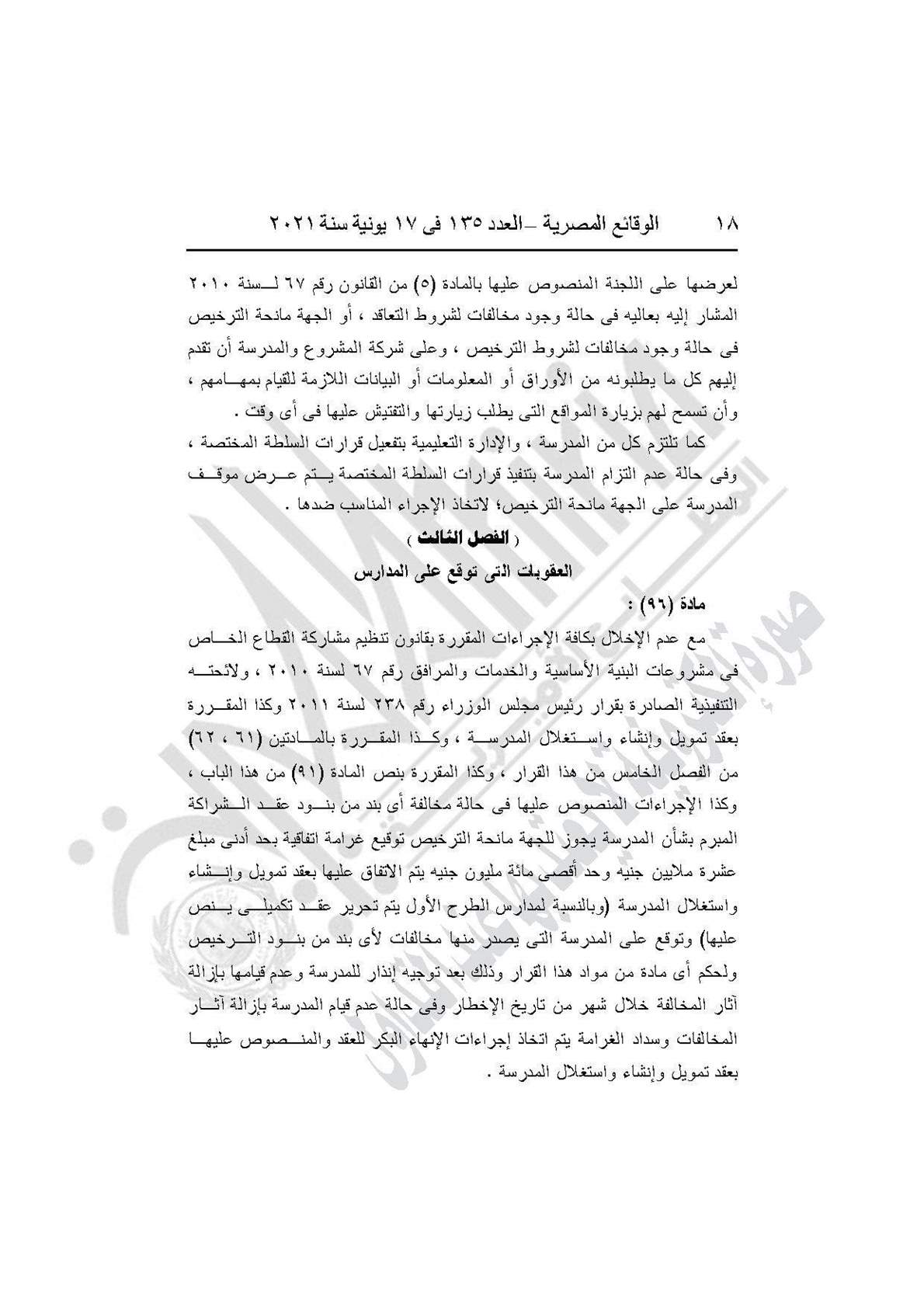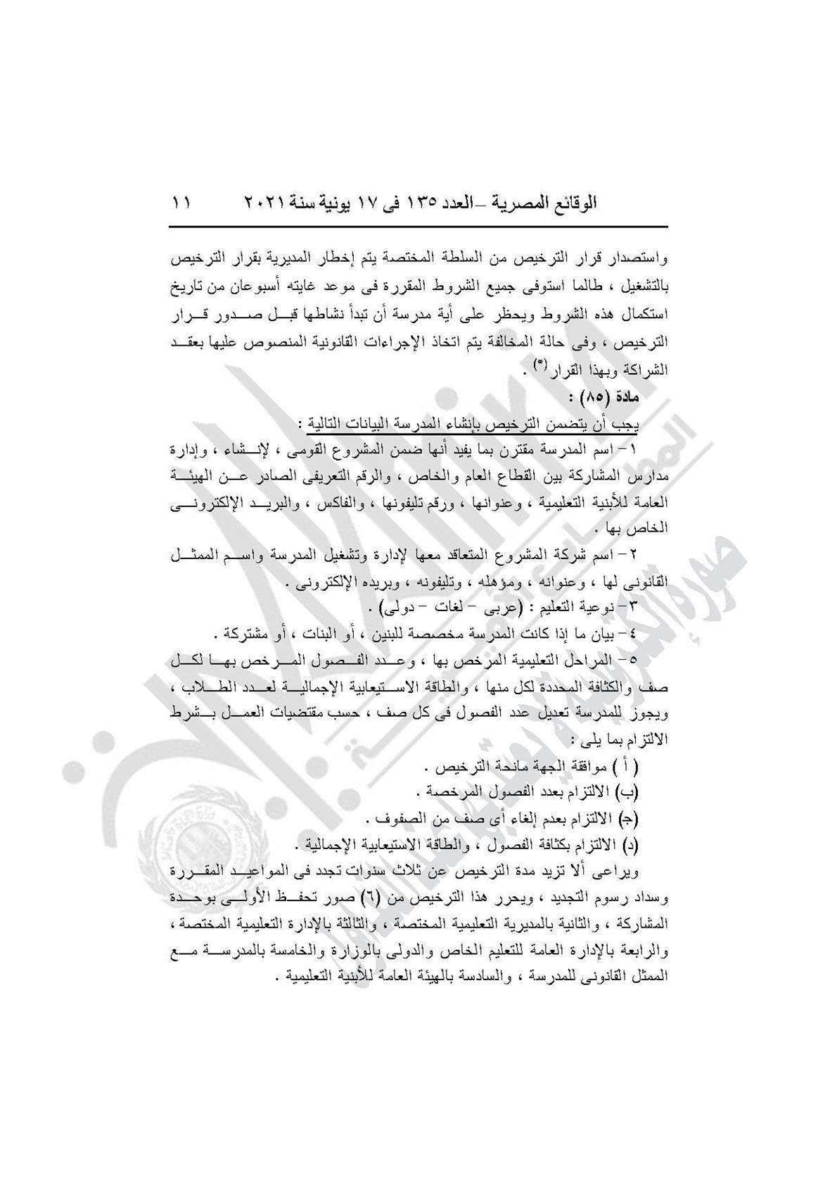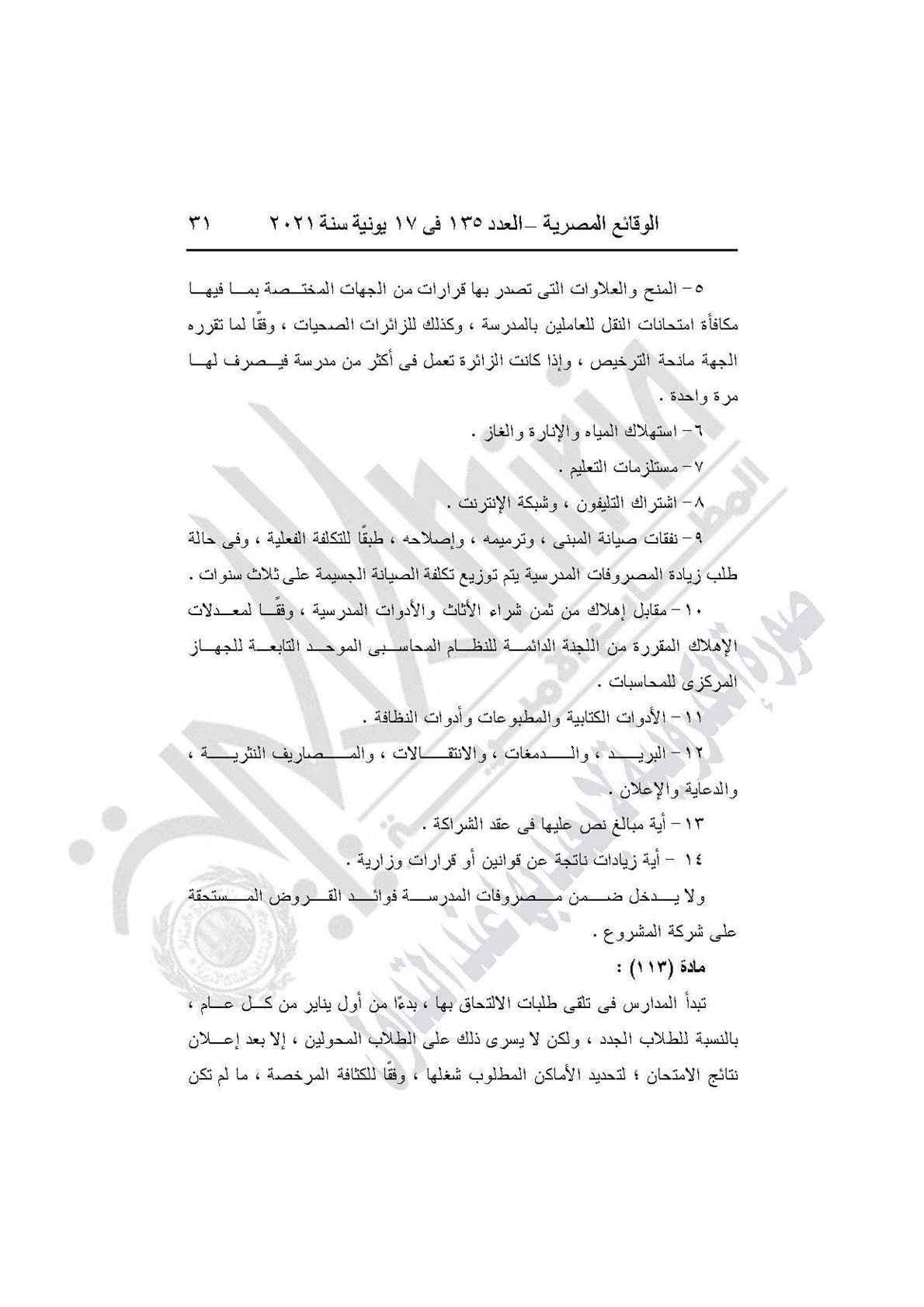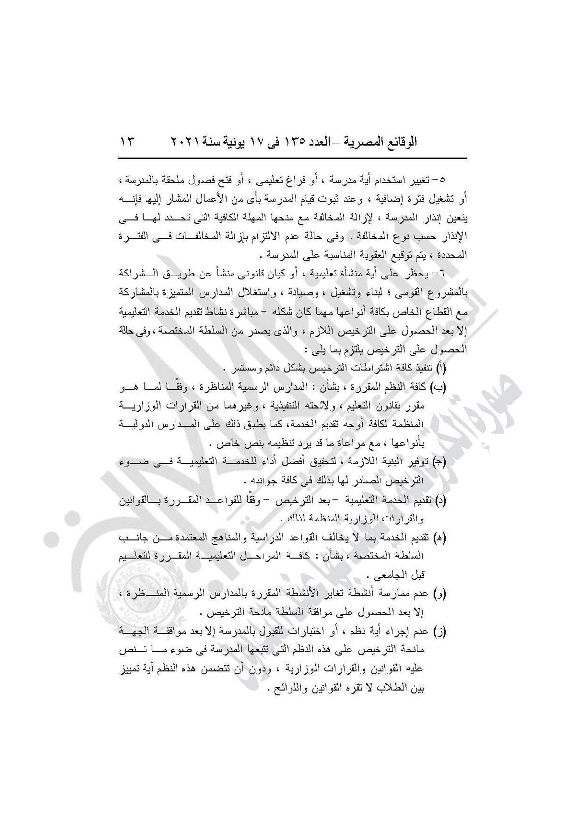 نشرت جريدة الوقائع المصرية في العدد 135، الصادر في 17 يونيه عام 2021، قرار وزارة التربية والتعليم والتعليم الفني رقم 59 لسنة 2021، بإضافة باب تاسع إلى القرار الوزارى رقم 420 لسنة 2014 بعنوان: (المدارس المنشأة عن طريق الشراكة بالمشروع القومى لبناء وتشغيل وصيانة واستغلال المدارس المتميزة بالمشاركة مع القطاع الخاص).