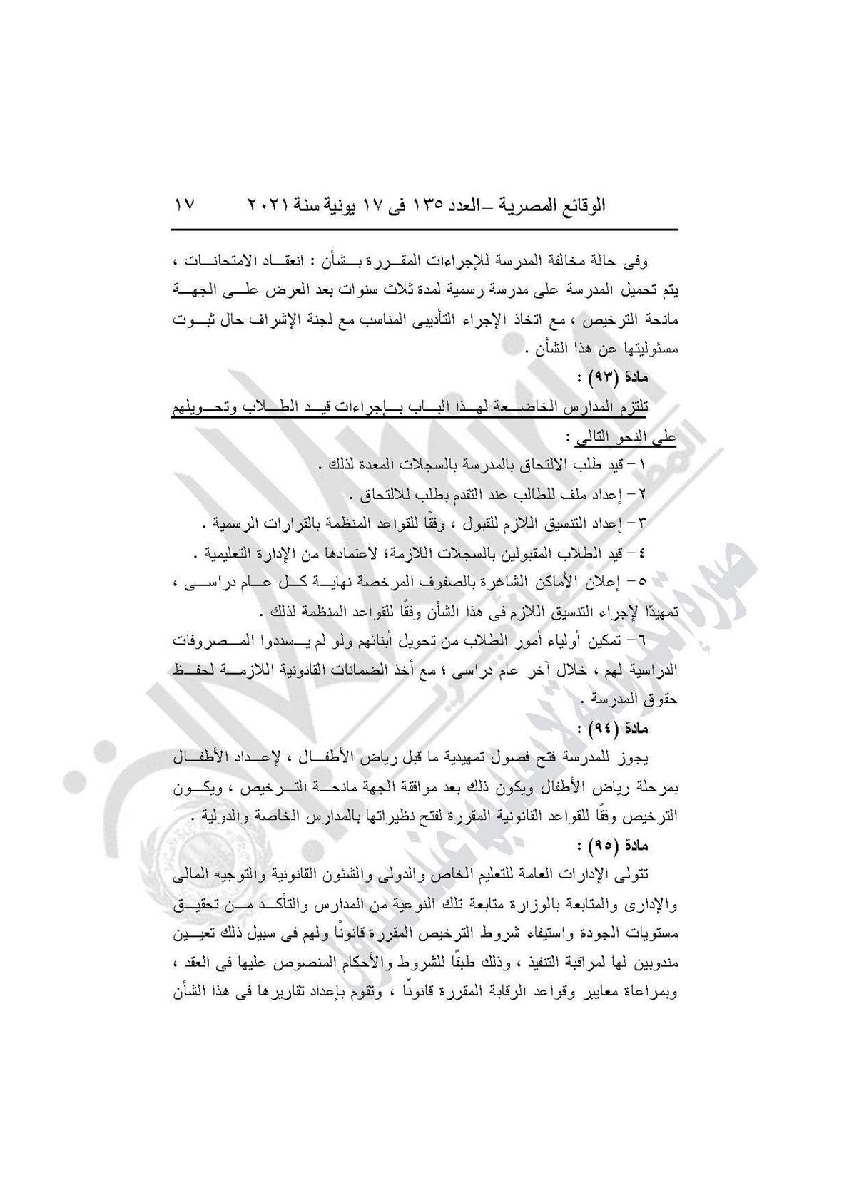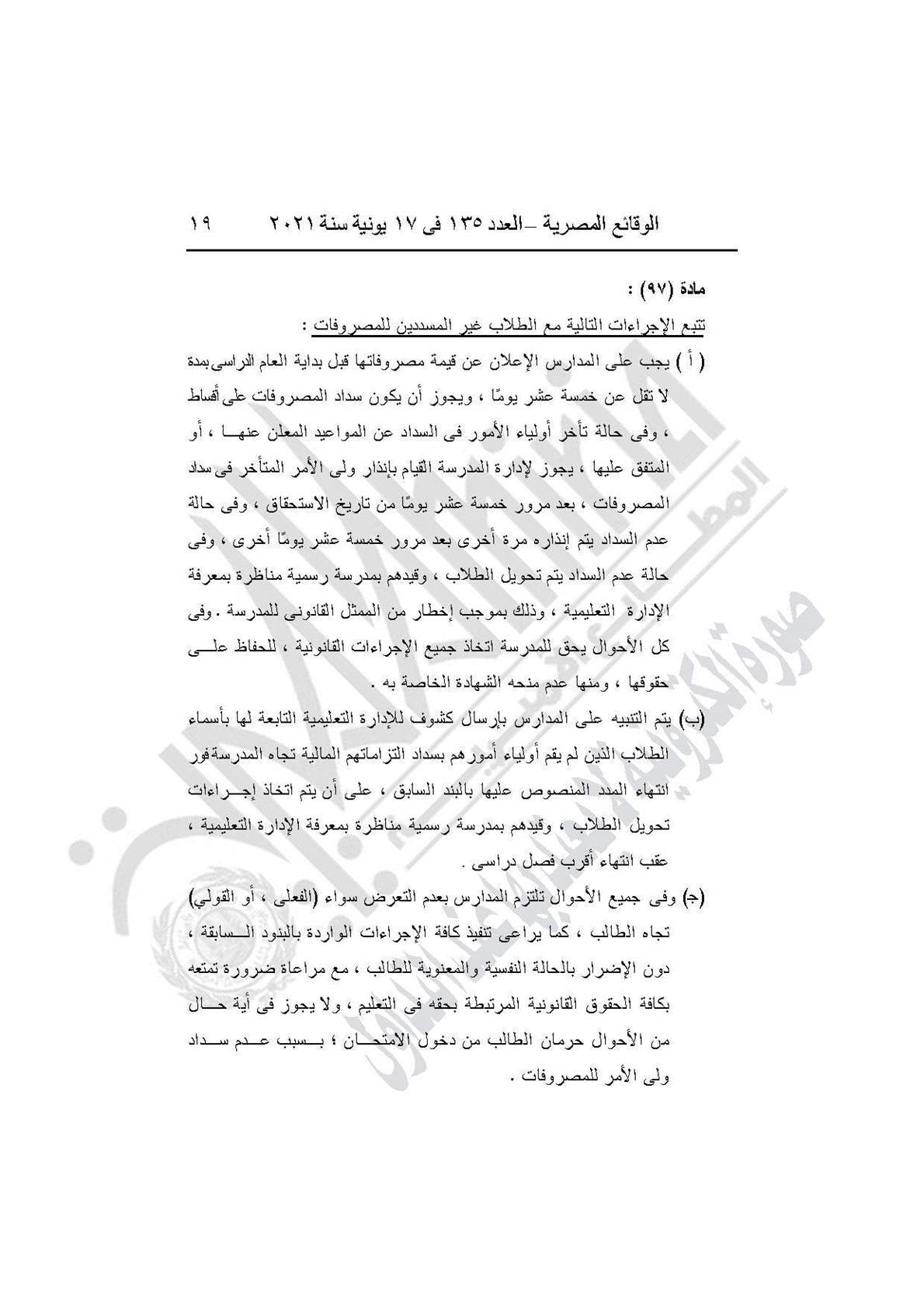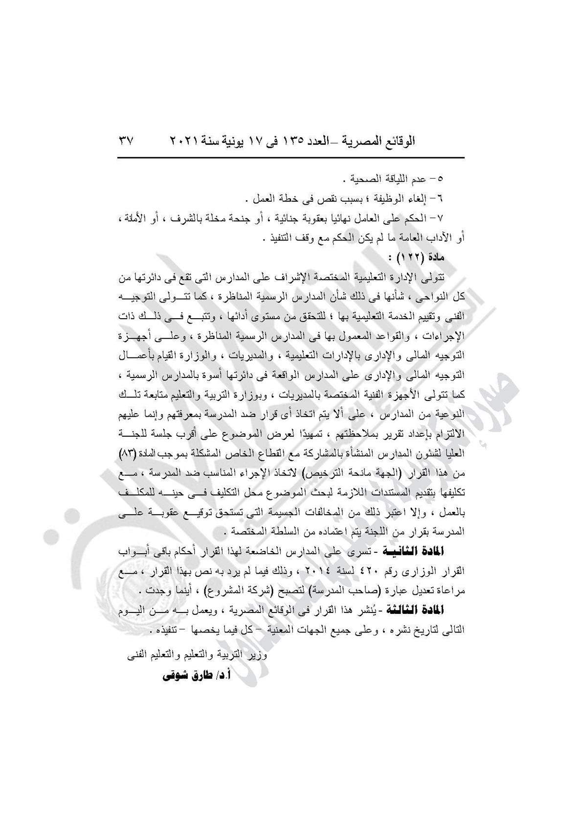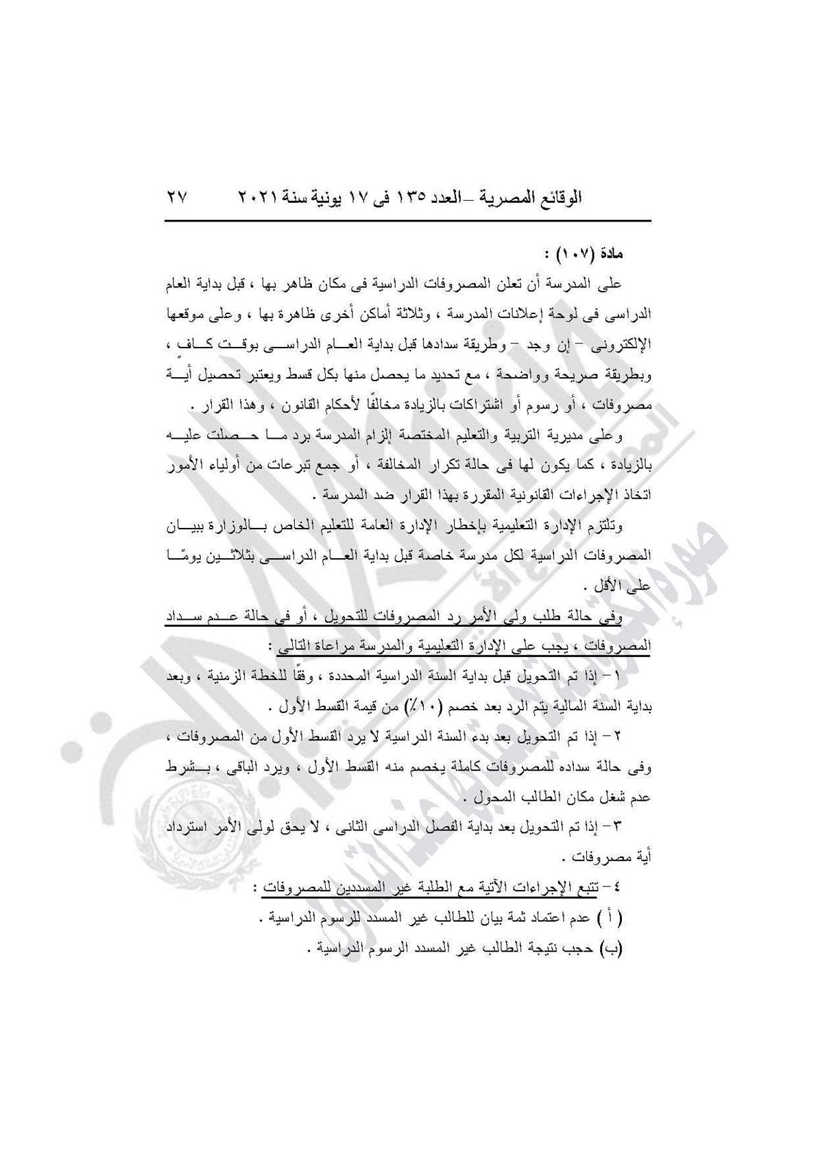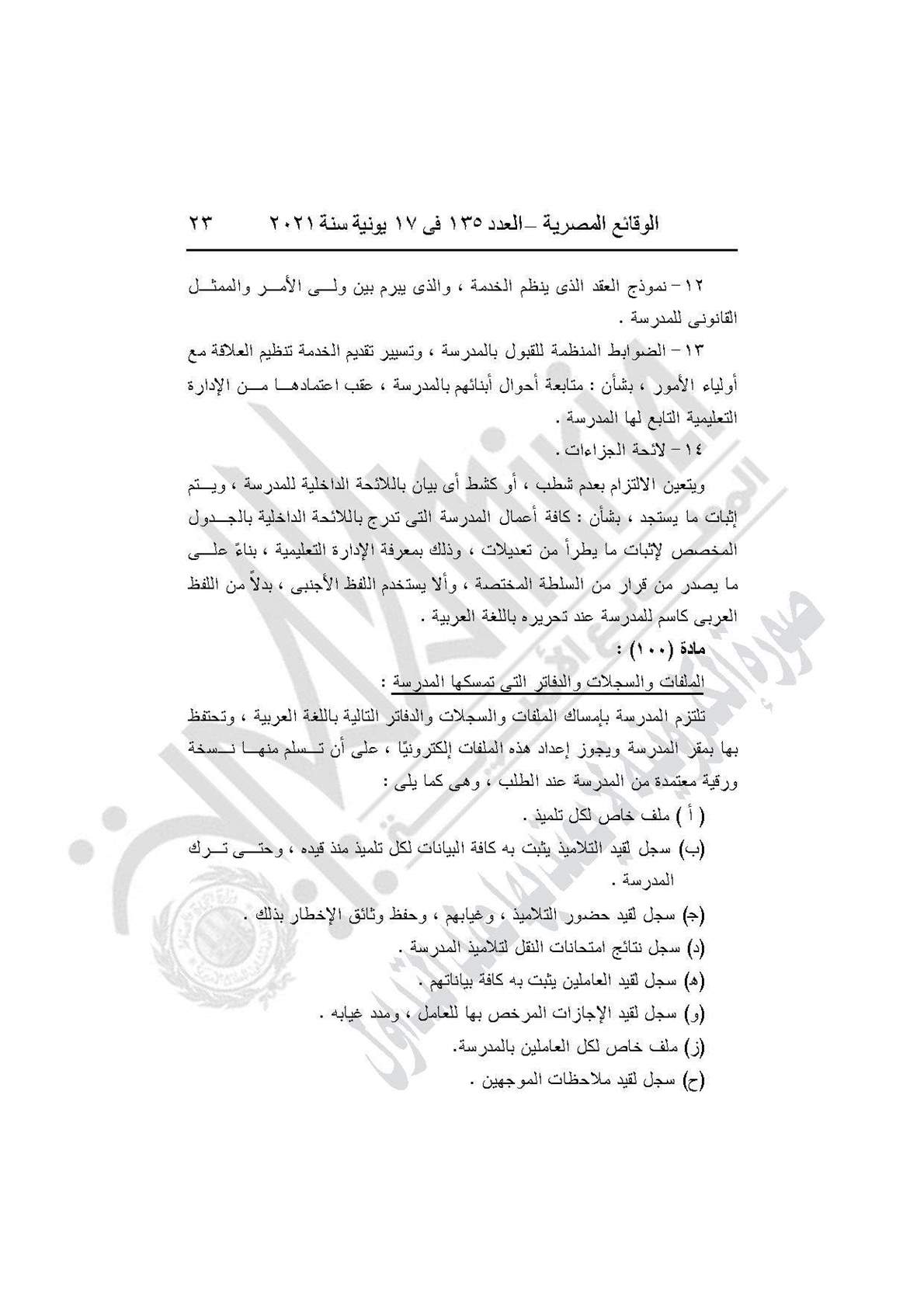 نشرت جريدة الوقائع المصرية في العدد 135، الصادر في 17 يونيه عام 2021، قرار وزارة التربية والتعليم والتعليم الفني رقم 59 لسنة 2021، بإضافة باب تاسع إلى القرار الوزارى رقم 420 لسنة 2014 بعنوان: (المدارس المنشأة عن طريق الشراكة بالمشروع القومى لبناء وتشغيل وصيانة واستغلال المدارس المتميزة بالمشاركة مع القطاع الخاص).
