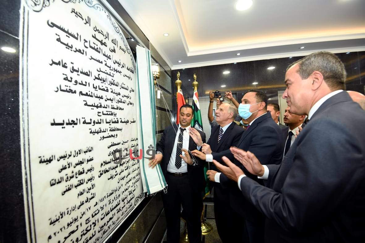وعقب الإستقبال قام محافظ الدقهلية يرافقة ضيوف المحافظة من أعضاء هيئة قضايا الدولة قاموا بافتتاح مقر فرع قضايا الدولة .