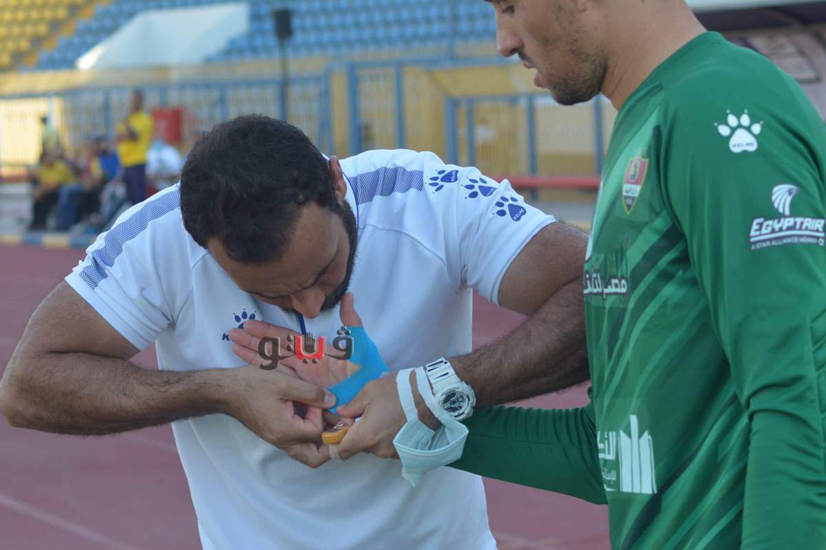 إصابة حارس المحلة قبل انطلاق مباراة الإسماعيلي | صور