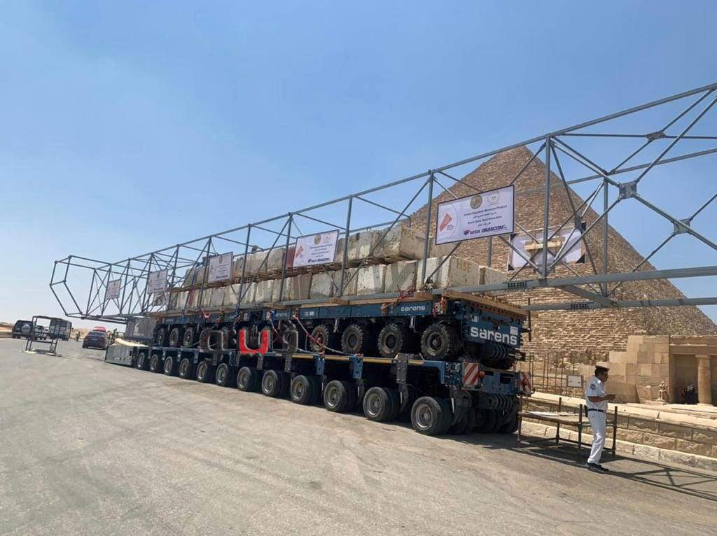 نجاح اختبار كفاءة العربة المخصصة لنقل مركب خوفو الأولى إلى المتحف المصري الكبير