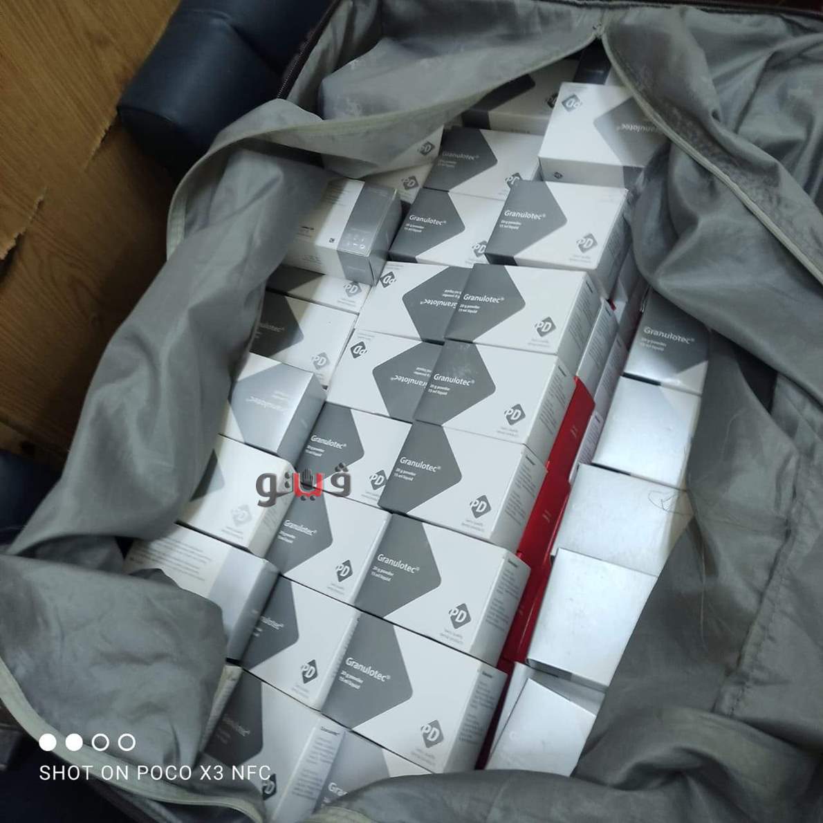 وبالعرض على مدحت عبدالصبور نائب مدير الإدارة كلف عبدالقوى عزوز عبدالقوى مأمور الجمرك بتفتيش حقائب الراكب تحت إشراف محمد عبدالوهاب مشرف الصاله الخضراء فتبين وجود 95 علبة دواء ( Granutotec-pulpotec ) الخاصة بعلاج الأسنان بكل منها عبوتان.