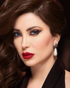 ونشرت الفنانة نسرين طافش صور جذابة لها وهي ترتدي فستان أسود اللون، وأخفت نصف وجهها بشعرها، وأضافت لمسة جذابة لإطلالتها بألوان بمكياج ومجوهرات ذات لون أحمر ياقوتي.
