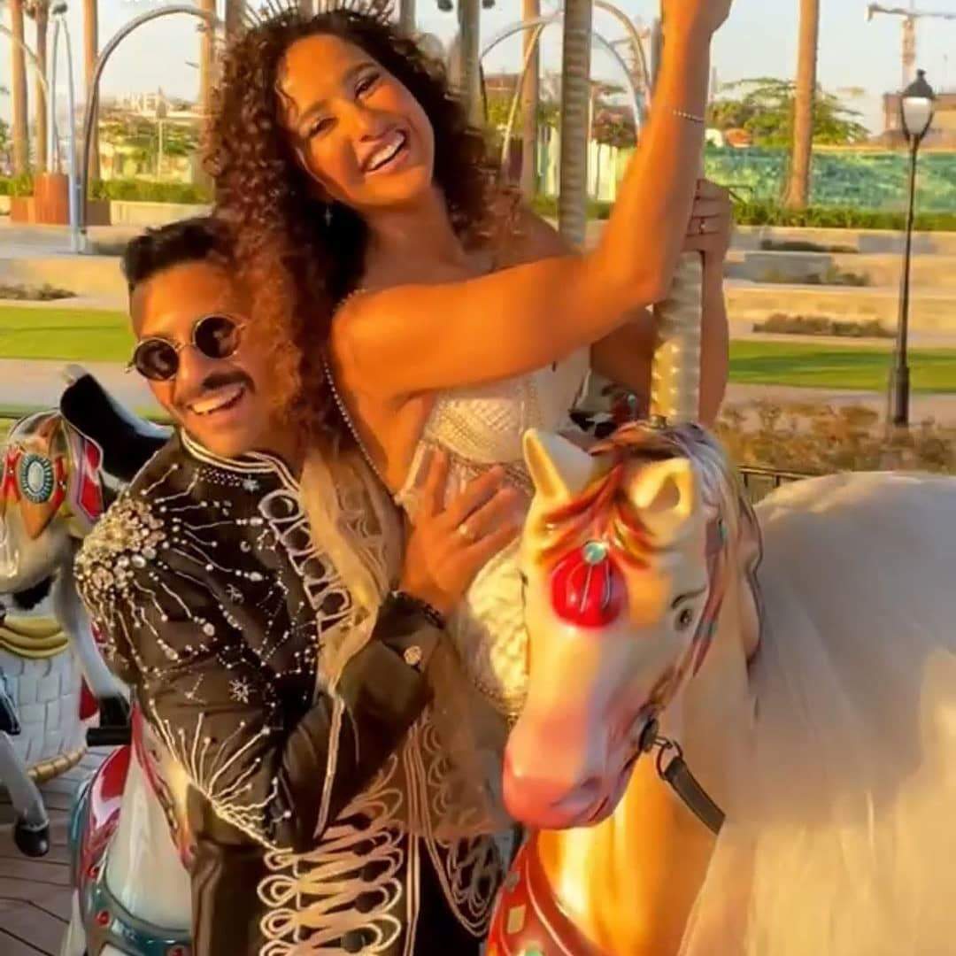 فاجأ الثنائي جمهورهم بأجواء الرومانسية والسعادة أثناء جلسة التصوير، فى الصور التي انتشرت عبر حساباتهما على مواقع التواصل الاجتماعي، أثناء حضورهم فى الملاهي.