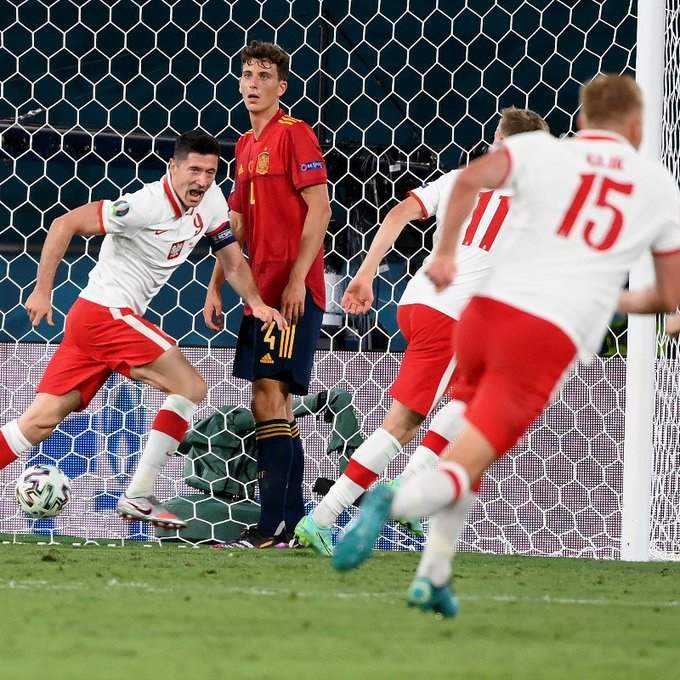 سجل ألفارو موراتا هدف إسبانيا في الشوط الأول في الدقيقة 25، وتعادل روبرت ليفاندوفسكي لمنتخب بولندا في الدقيقة 54.