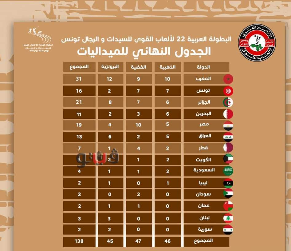 اختتم المنتخب الوطني لألعاب القوى، مشاركته في منافسات البطولة العربية في نسختها رقم 22، والمقامة في تونس.