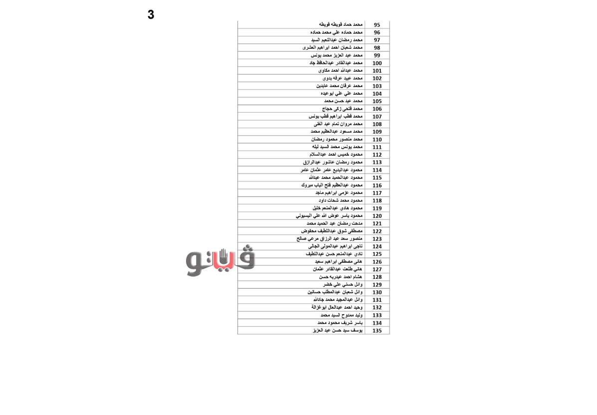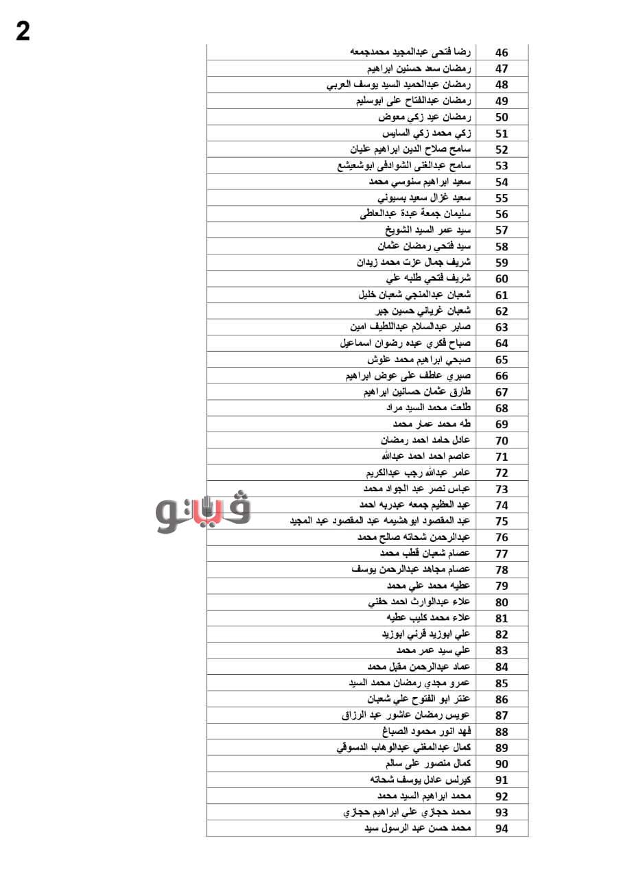 وفيما يلي الأسماء المستحقة: