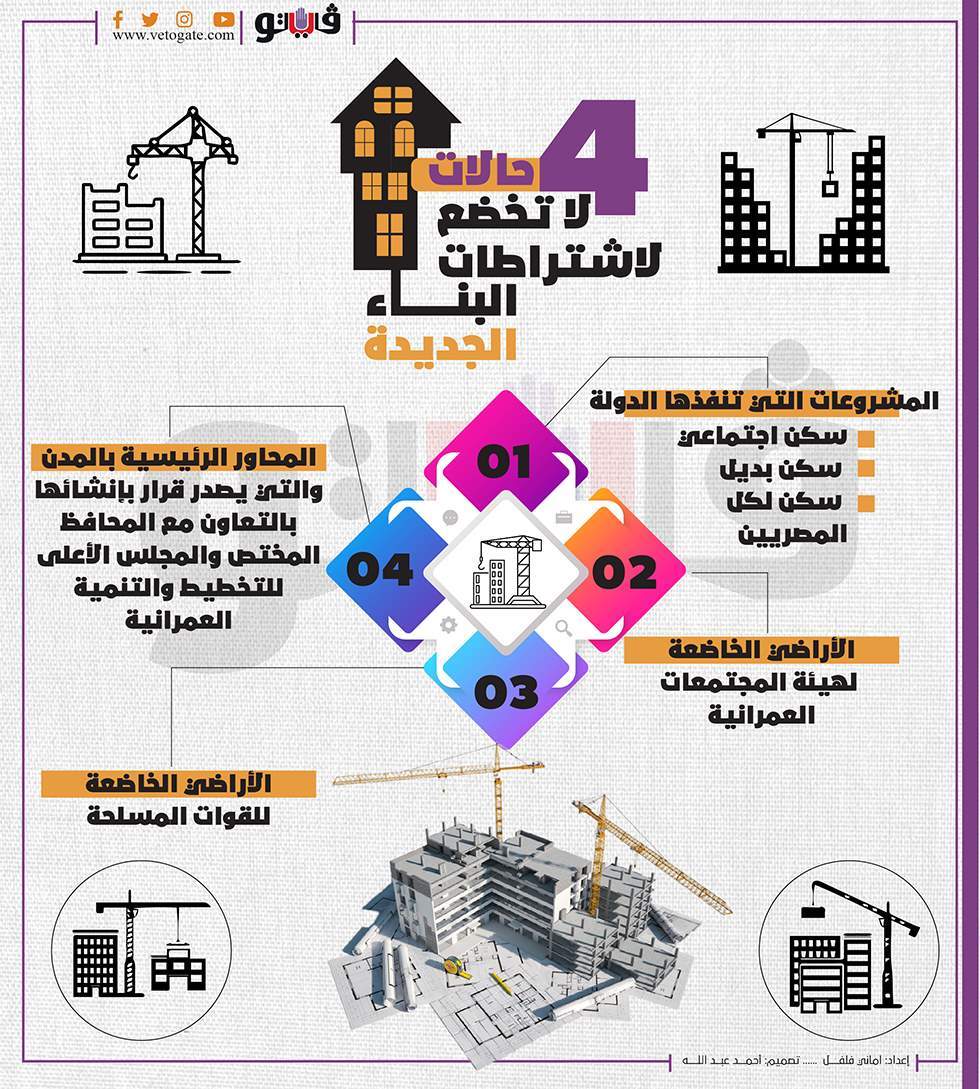 4 حالات لا تخضع لاشتراطات البناء الجديدة | إنفوجراف الإثنين 21/يونيو/2021 - 03:46 م 6/21/2021 3:46:47 PM اشتراطات البناء الجديدة أماني فلفل شارك طباعة 18 حجم الخط حددت وزارة التنمية المحلية، الضوابط والاشتراطات البنائية في رخص البناء الجديدة. شارك طباعة هيئة المجتمعات العمرانية التنمية المحلية اشتراطات البناء الجديدة الاشتراطات البنائية