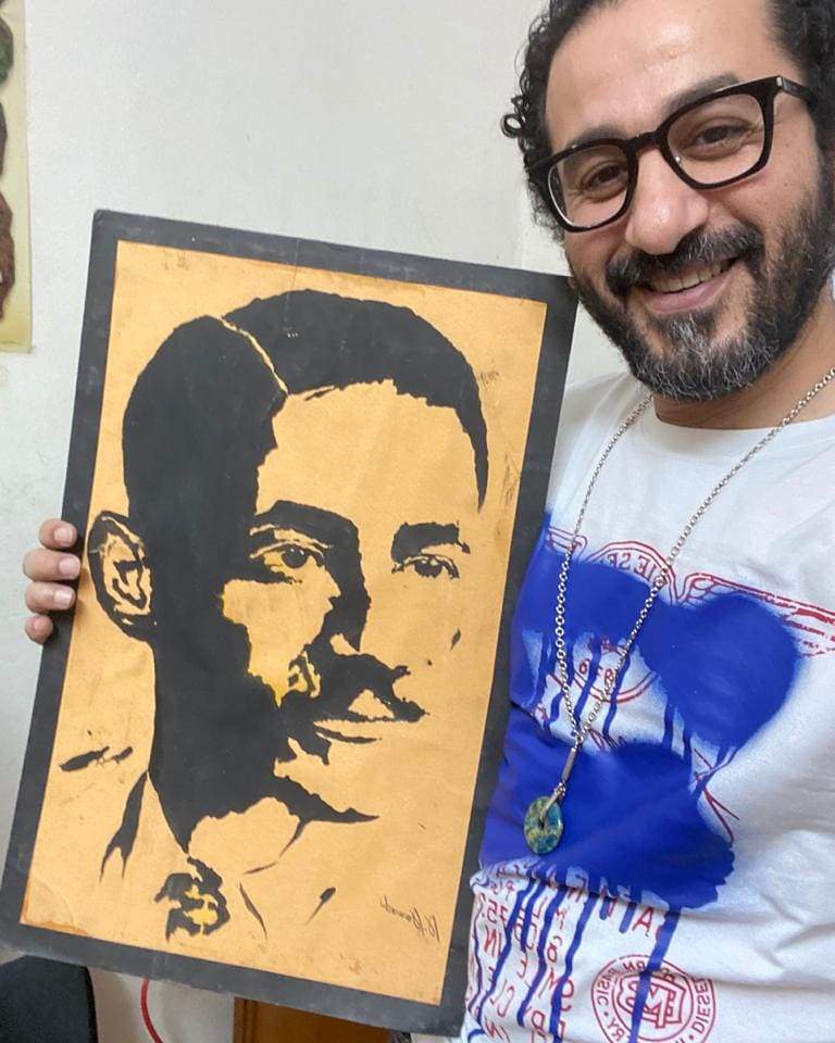 وكتب أحمد حلمي على الصورة: "الصورة دي رسمتها لأبويا من ٢٥ سنة، أبي العزيز.. هل تراني كما أراك دوماً في منامي؟".