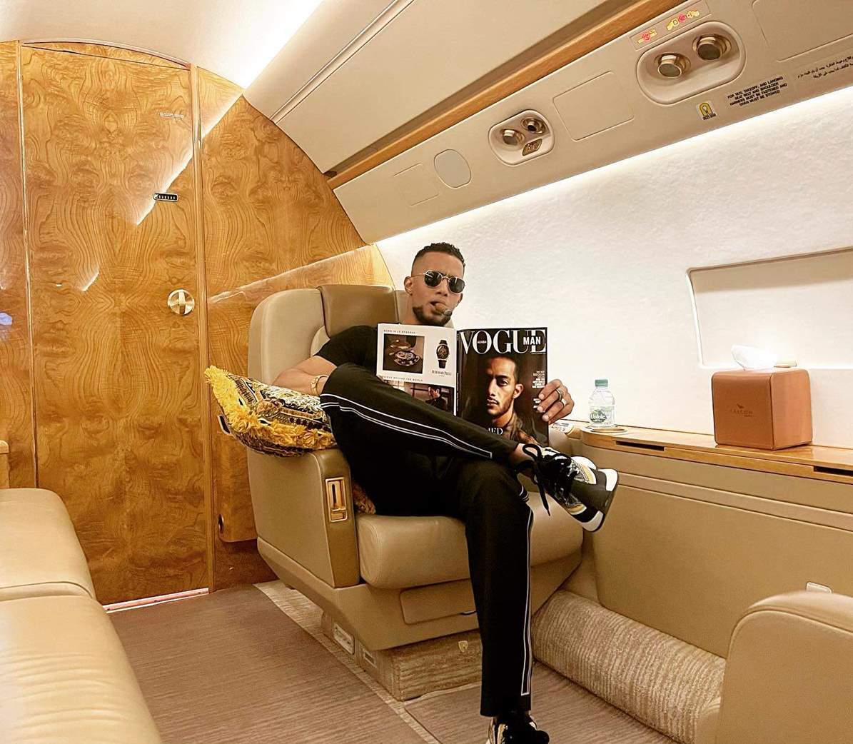 وظهر محمد رمضان من داخل الطائرة وعلق قائلا: "أسافر إلى مدينتي دبي الآن".