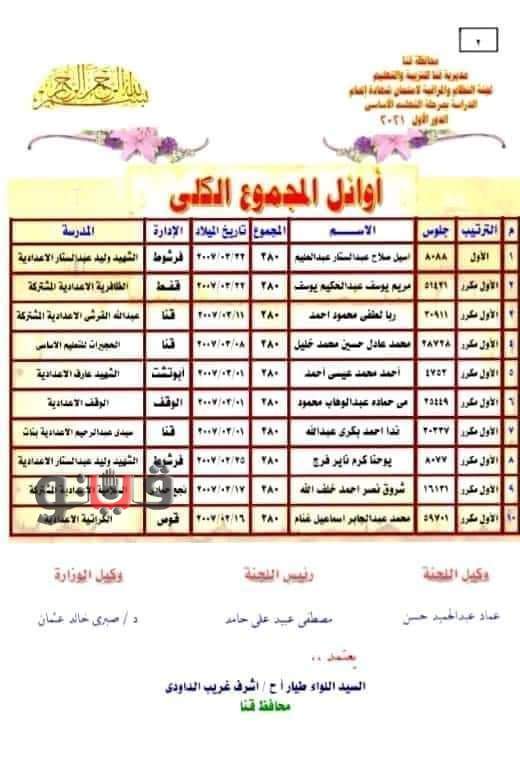 رد تعليم قنا ومن جابنها أكدت مديرية التربية والتعليم بقنا، أنه تم اختيار أسماء الأوئل بناءً على السن وترتيب الحروف الأبجدية للطلاب بعد كثرة عدد الأوئل.
