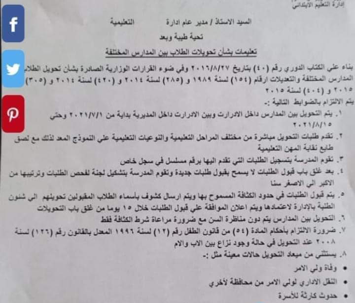 وحددت الإدارات التعليمية عدد من التعليمات والضوابط في إجراءات التحويل بين المدارس وهي كالتالي: