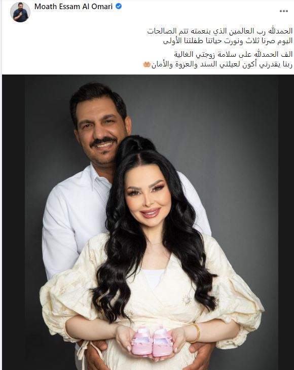 "الحمد لله رب العالمين الذي بنعمته تتم الصالحات، اليوم صرنا ثلاثة ونورت حياتنا