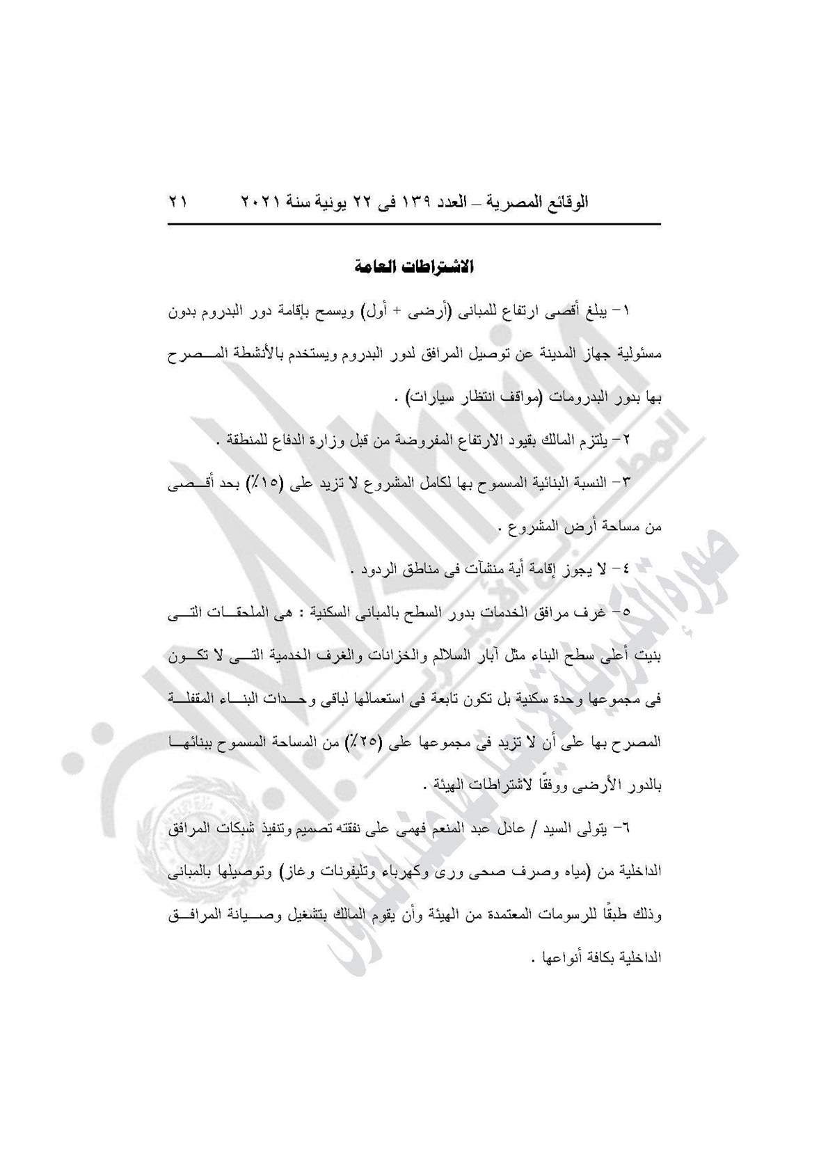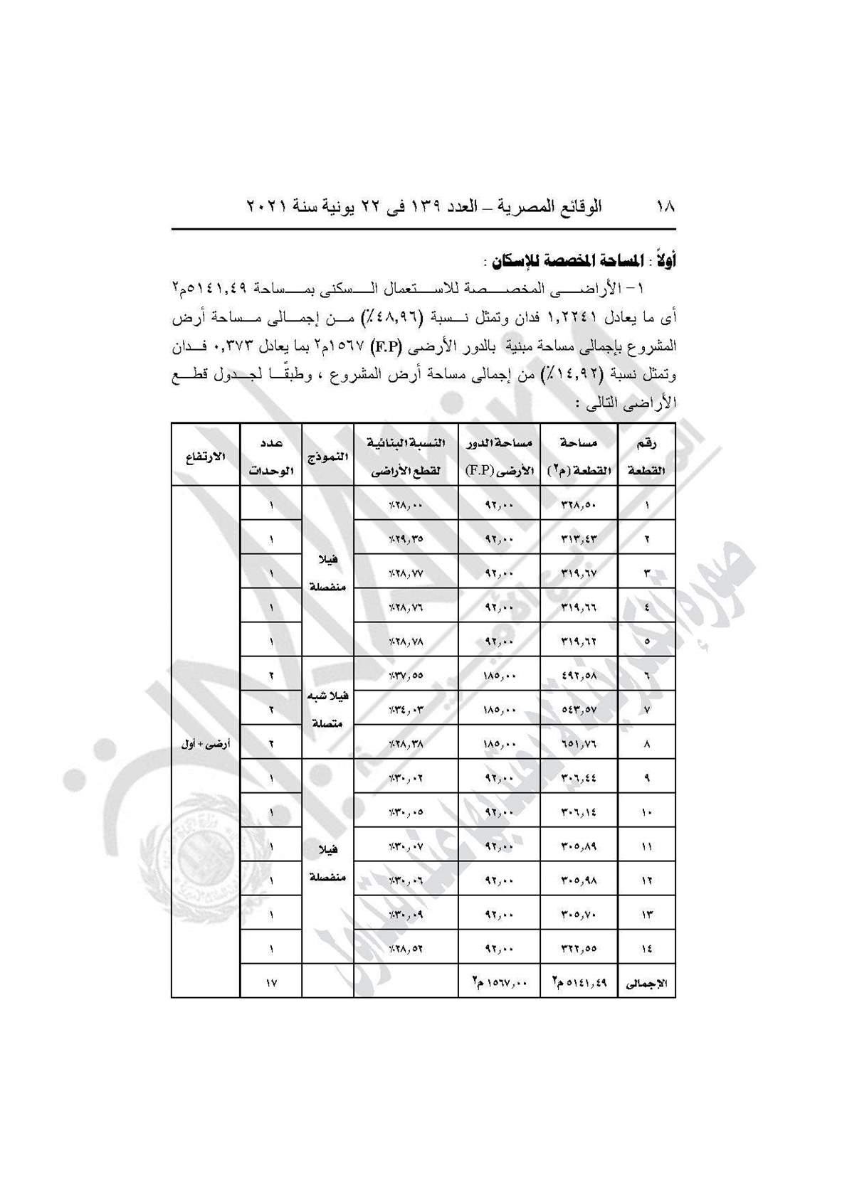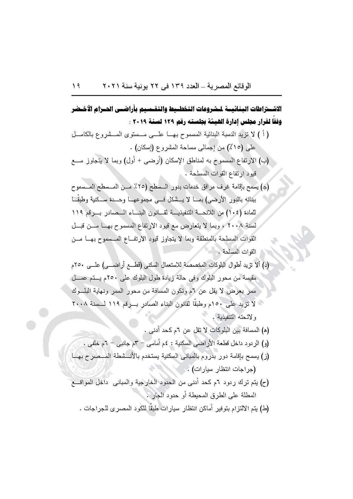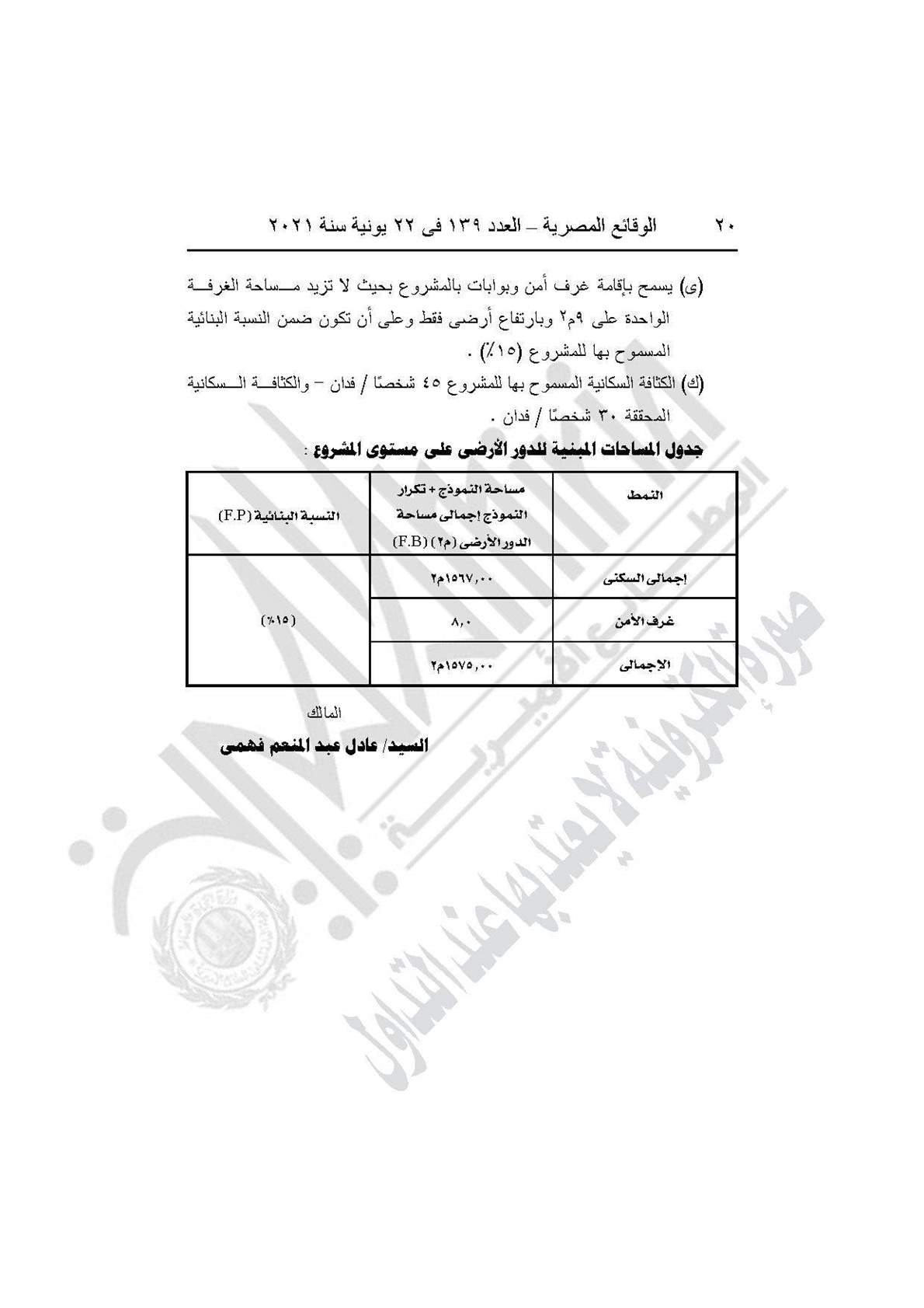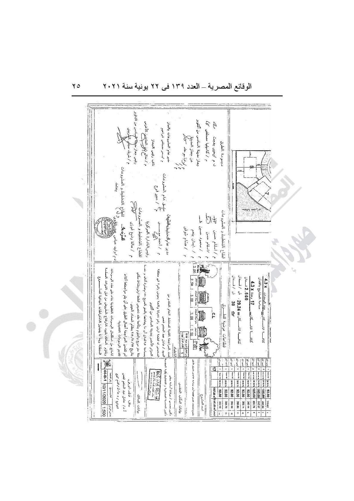 نشرت جريدة الوقائع المصرية في عددها رقم 139، الصادر في 22 يونية 2021، قرار وزارة الإسكان والمرافق والمجتمعات العمرانية رقم 208 لسنة 2021، بشأن اعتماد تخطيط وتقسيم قطعة الأرض رقم (44 ب/1) بمساحة 2.5 فدان بما يعادل 10500 متر مربع، الواقعة بالحوض رقم (2) الحزام الأخضر بمدينة 6 أكتوبر، لإقامة نشاط سكني بمقابل عيني.