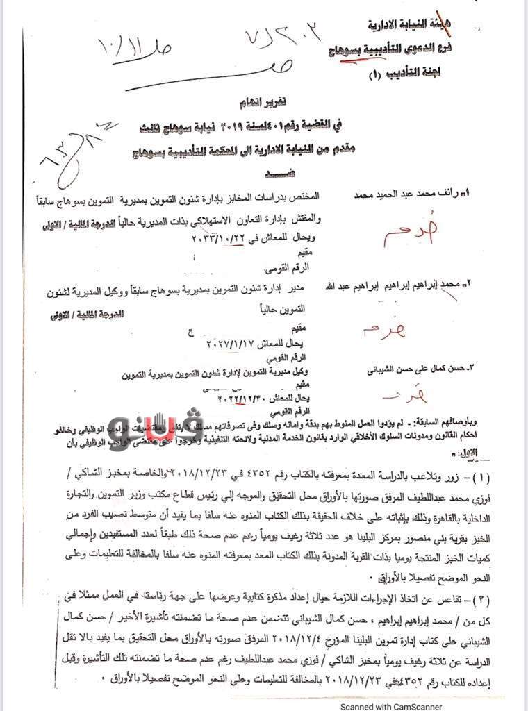 وجاء بأوراق القضية أن حسن كمال علي، وكيل المديرية لإدارة شئون التموين إرتكب 5 مخالفات إدارية وقانونية منها، التأشير على خطاب إدارة شئون التموين بمركز البلينا بعبارة "شئون التموين ولا تقل الدراسة عن ثلاثة أرغفة يوميًا" بقصد منع تشغيل مخبز الشاكي رغم مخالفة ذلك لقرار وزير التموين رقم 155 لسنة 2018 المتضمن بأن لا يقل نصيب متوسط الفرد من الخبز بالنسبة لتشغيل المخابز المستجدة عن 2.5 رغيف يوميًا، وأعتمد الدراسات التي أعدها المحال الأول رغم مخالفتها للحقيق بقصد التعسف مع الشاكي رغم إستيفائه كافة الإجراءات.