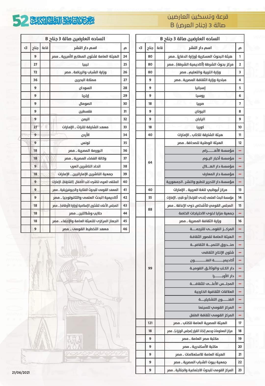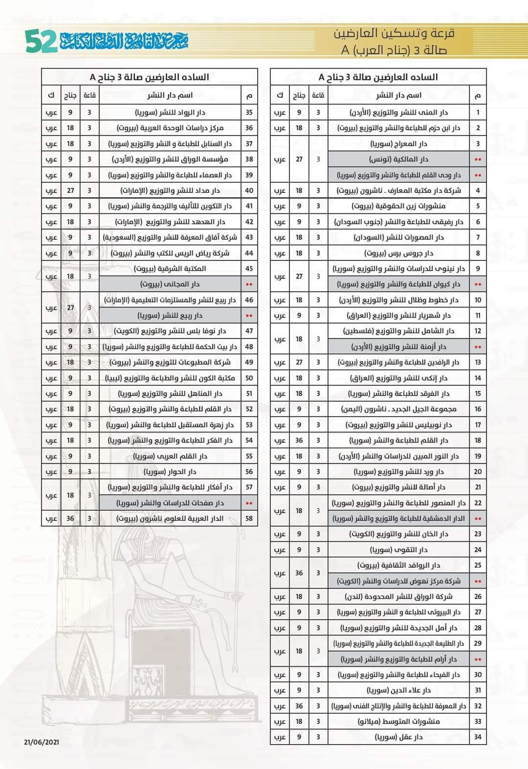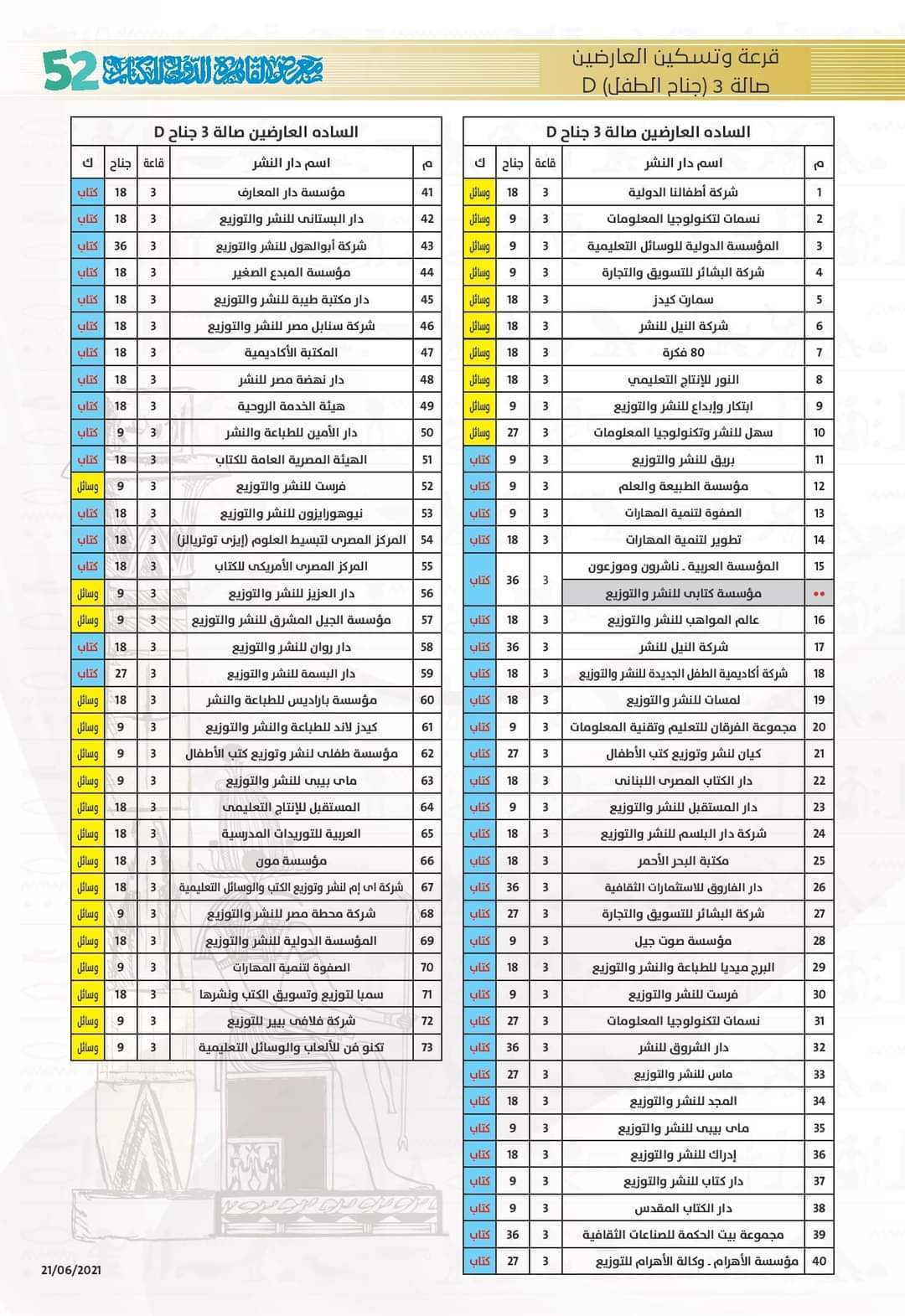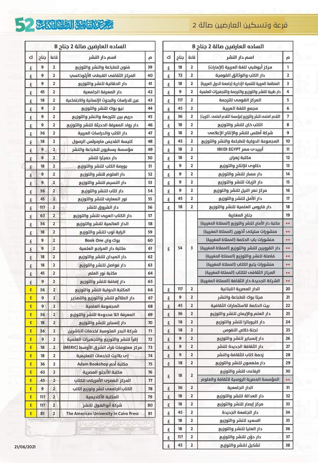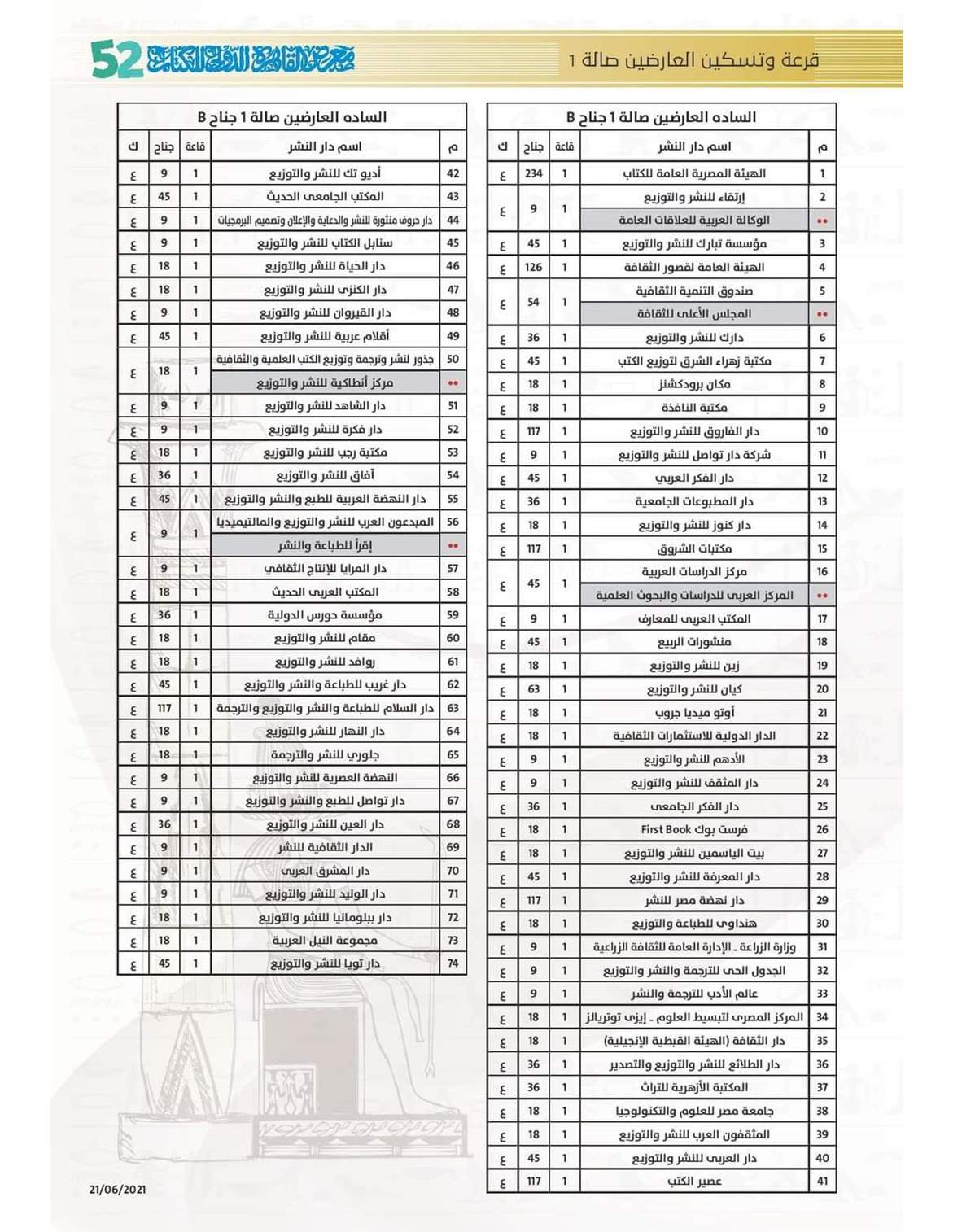 كشفت اللجنة العليا لمعرض القاهرة الدولي للكتاب في دورته الـ 52 عن خريطة توزيع دور النشر داخل صالات وأجنحة المعرض لعام 2021، والمقرر انعقاده في الفترة من 30 يونيو الجاري وحتى 15 يوليو المقبل.